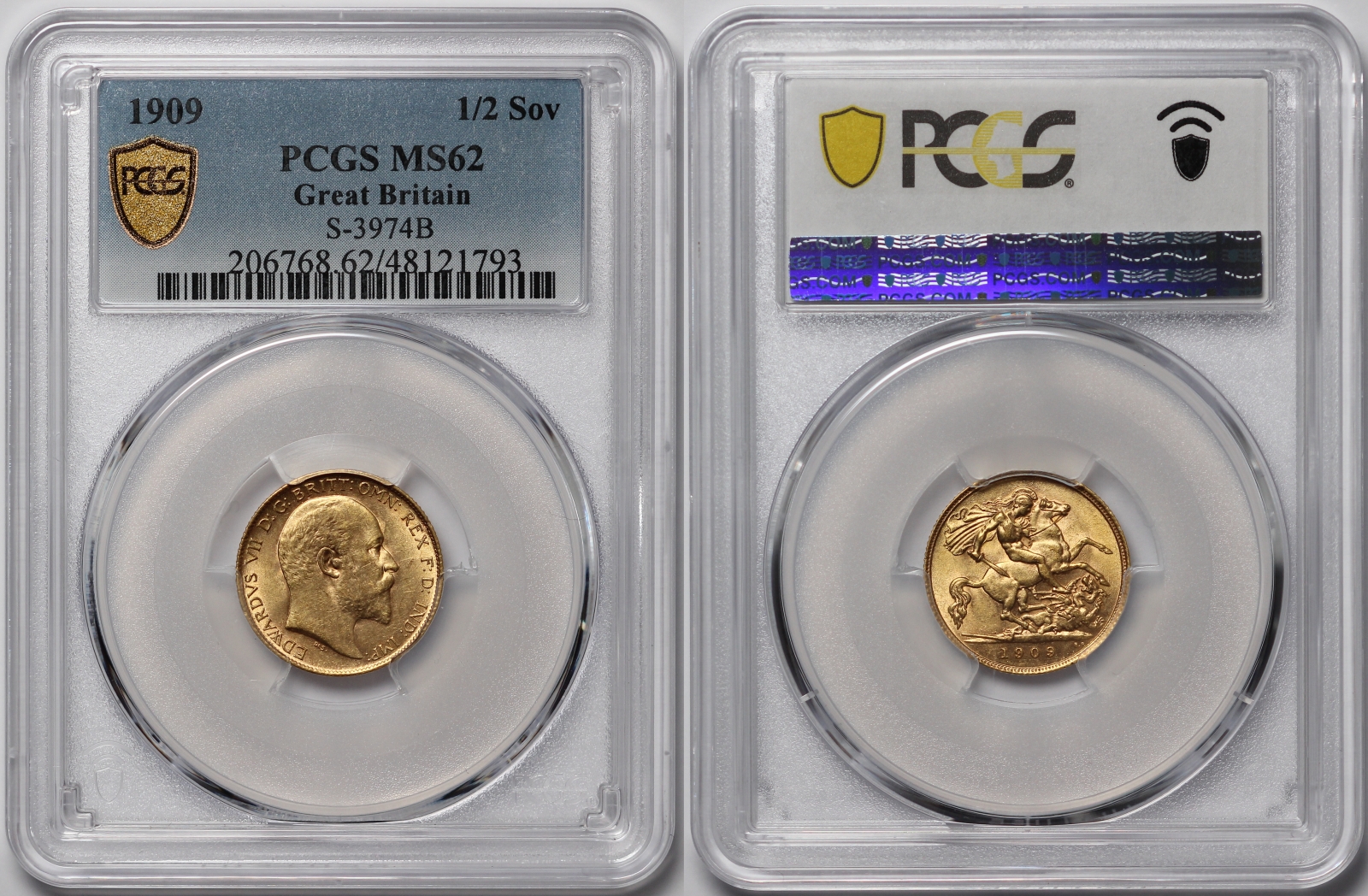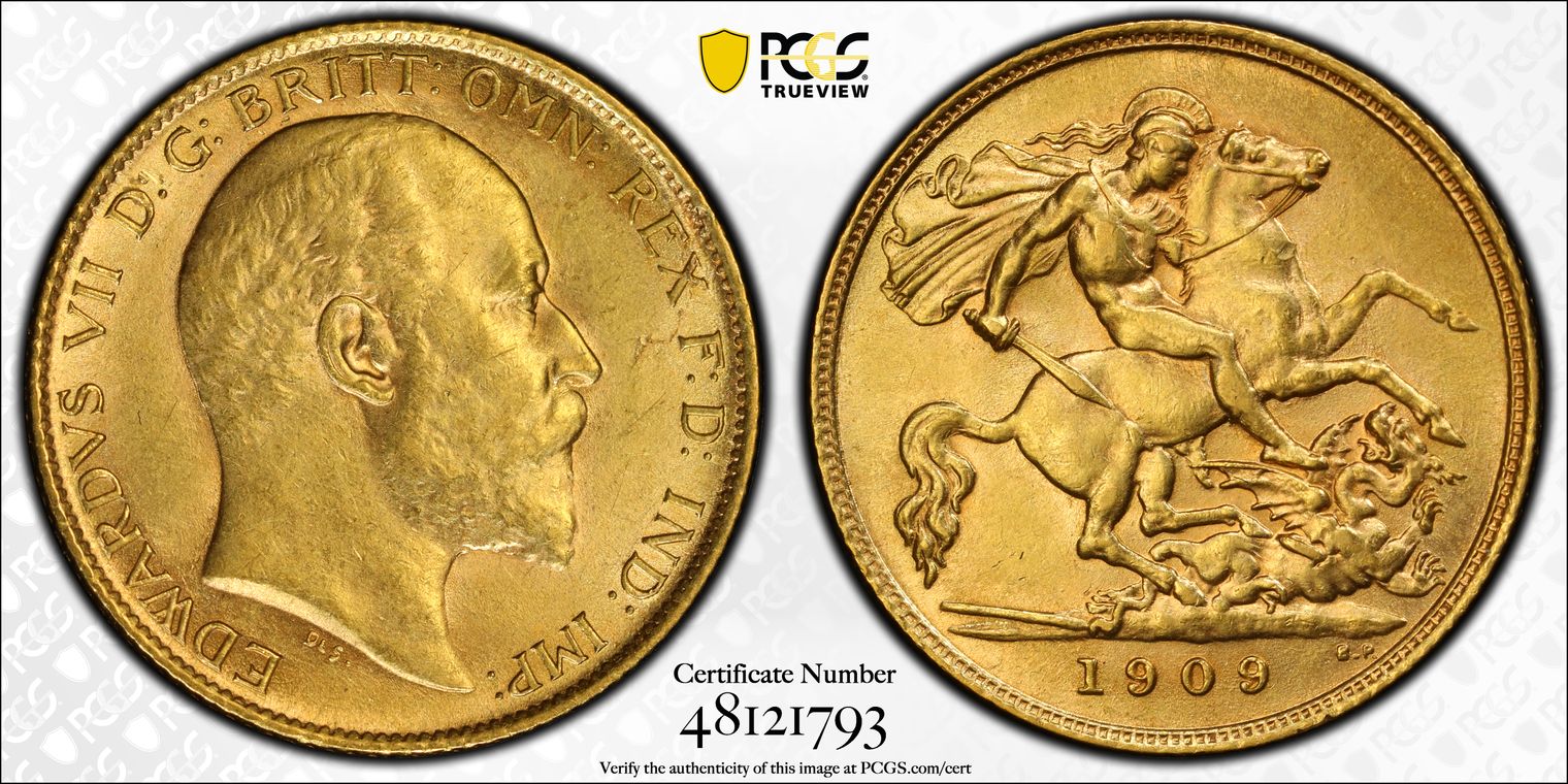 Great Britain Half Sovereign, 1909. London mint. S-3974B. PCGS graded Uncirculated MS62.