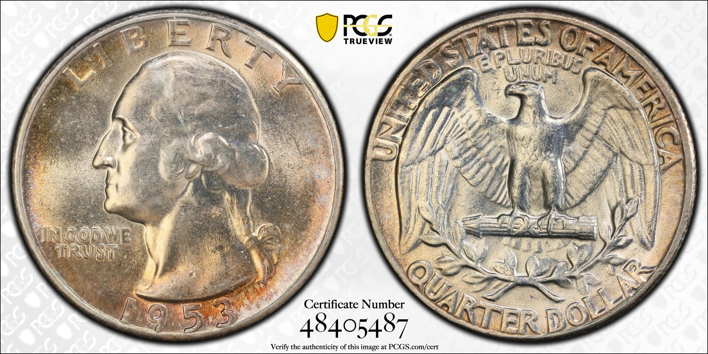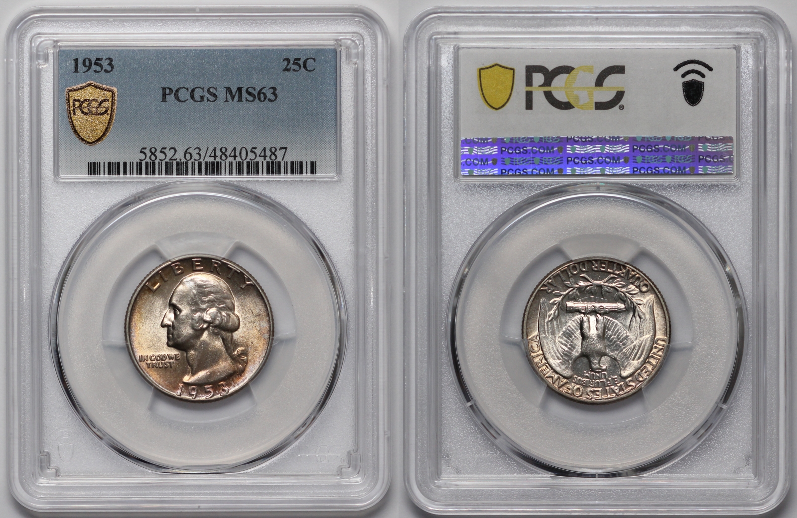 PCGS Graded MS63 USA 1953 Washington Quarter Dollar 25C Uncirculated Silver Coin