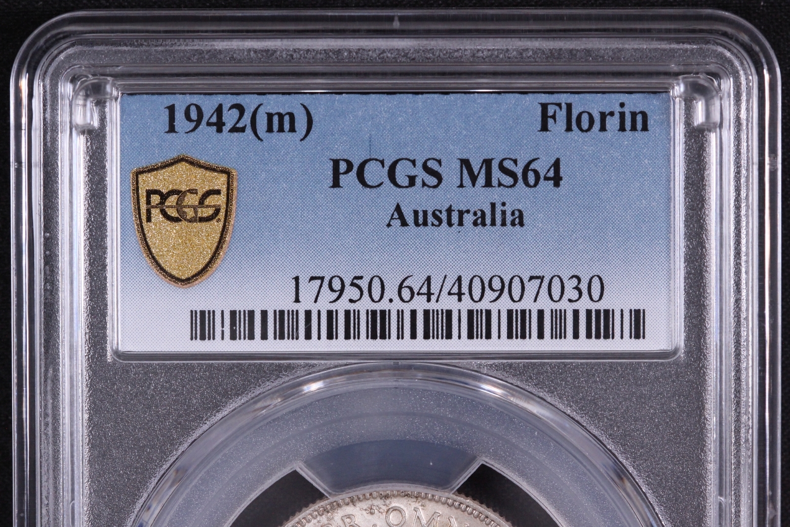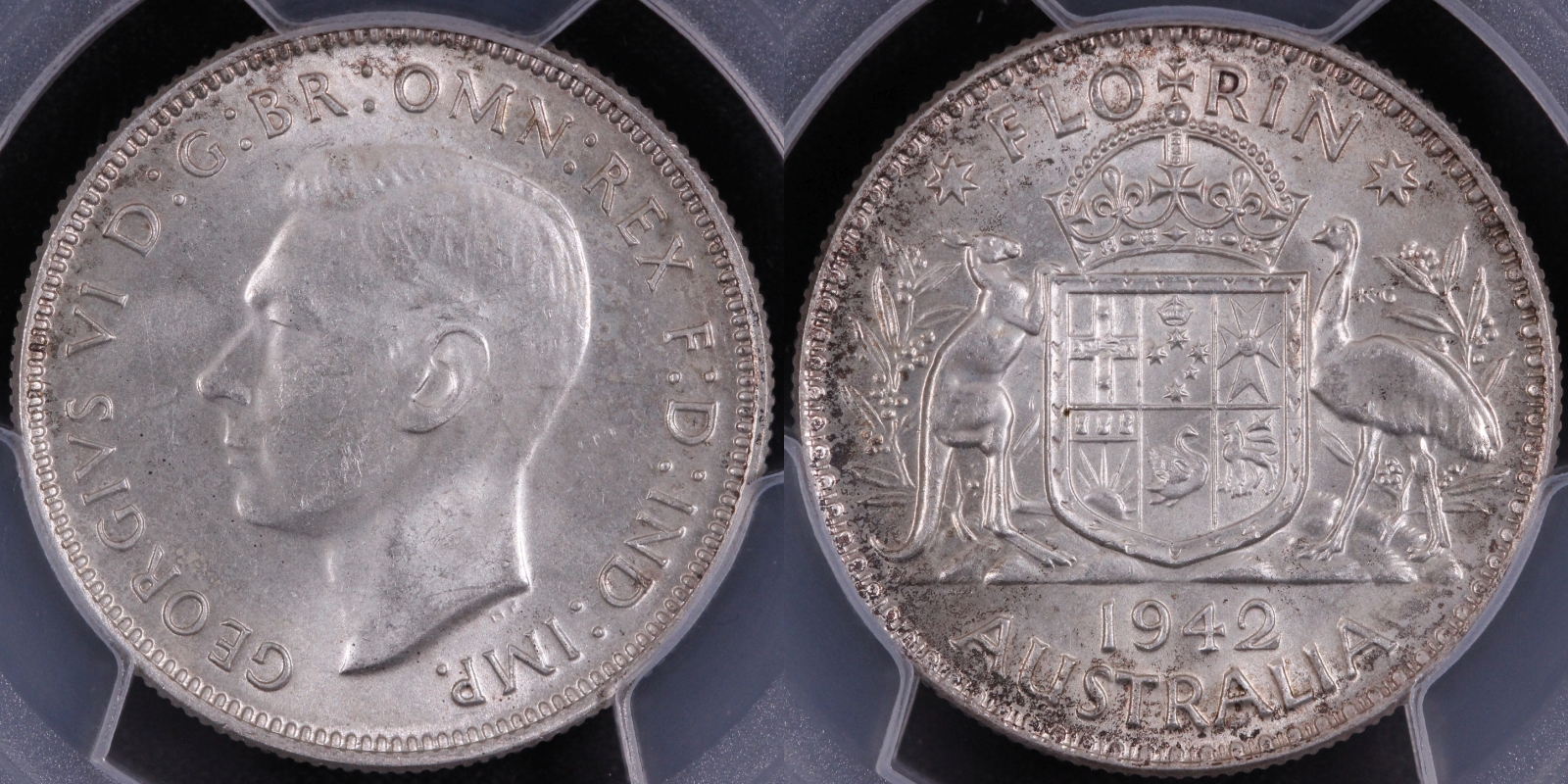Australia 1942 Florin, Melbourne Mint, PCGS graded MS64 Superb Choice Uncirculated, with only three other coins of its type graded finer by PCGS.