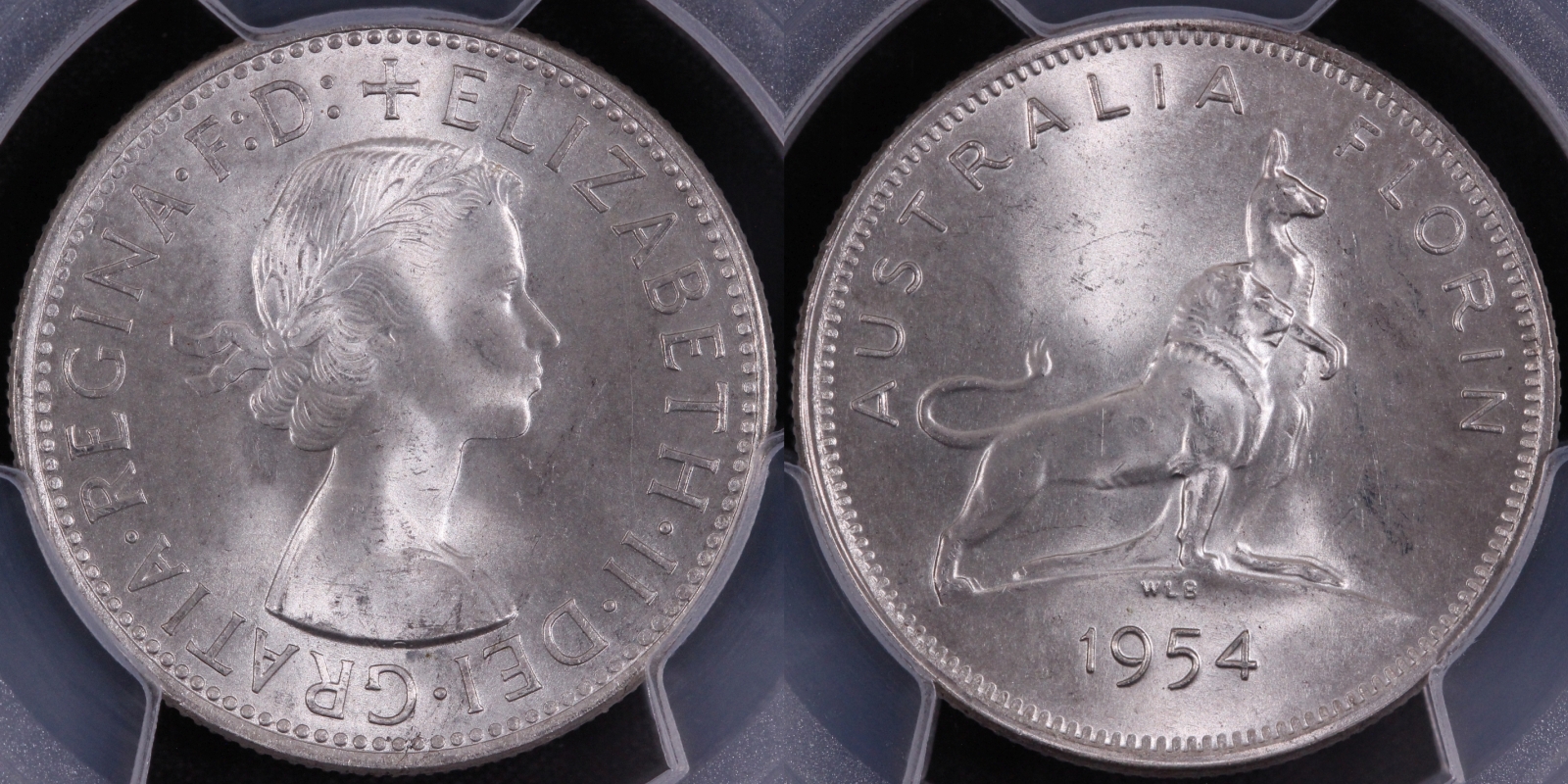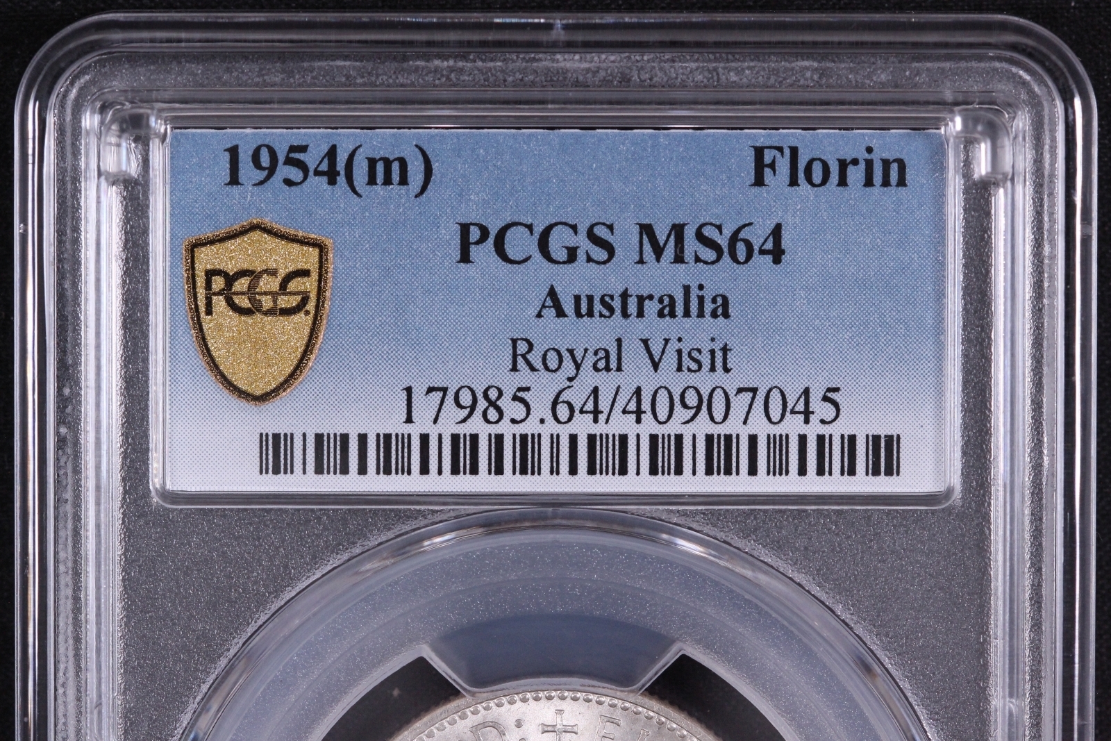 PCGS Graded MS64 – Australia 1954(m) Florin Royal Visit Uncirculated Silver Coin
