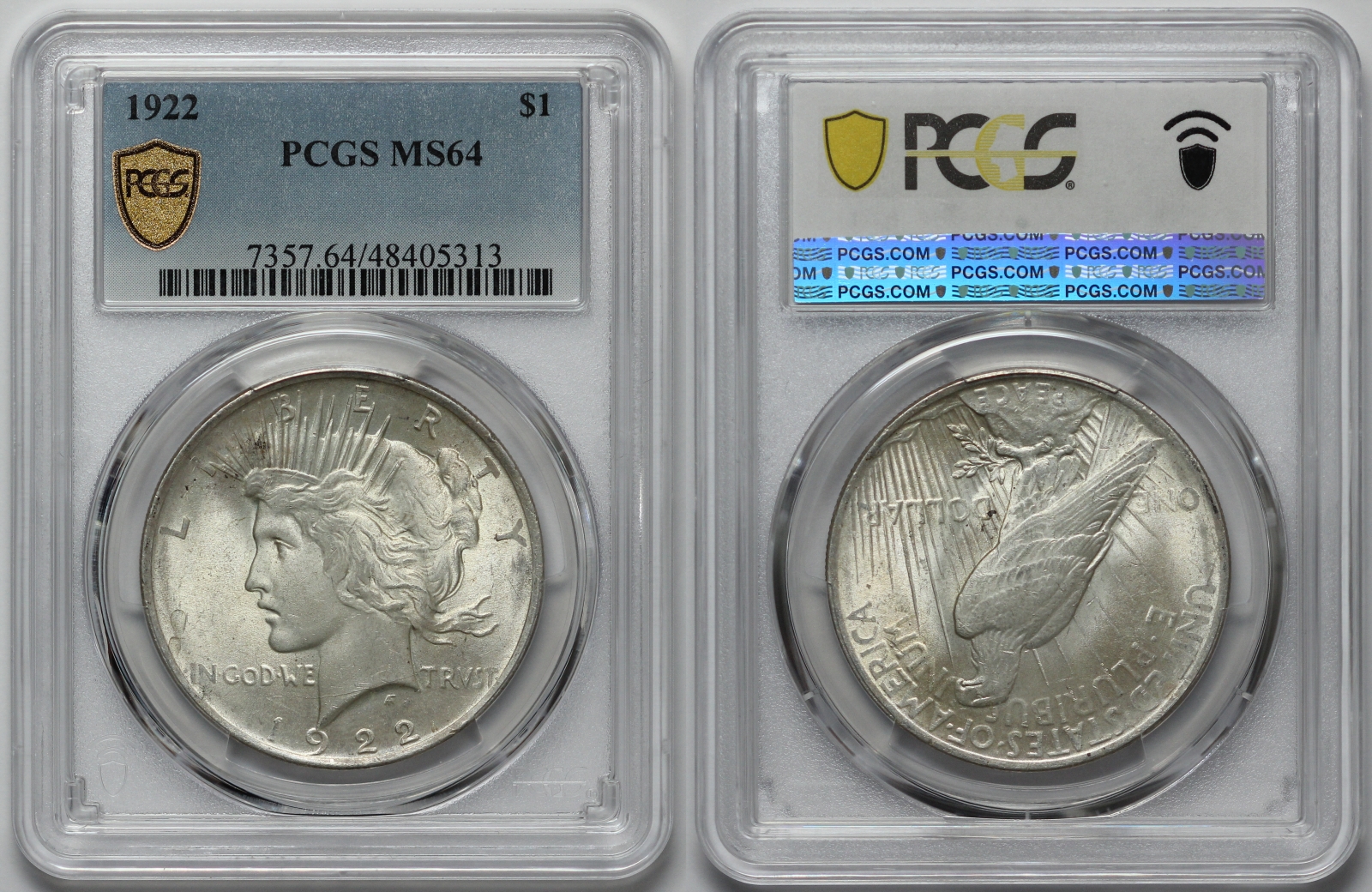 PCGS Graded MS64 United States 1922 Peace Dollar $1 Uncirculated Silver Coin
