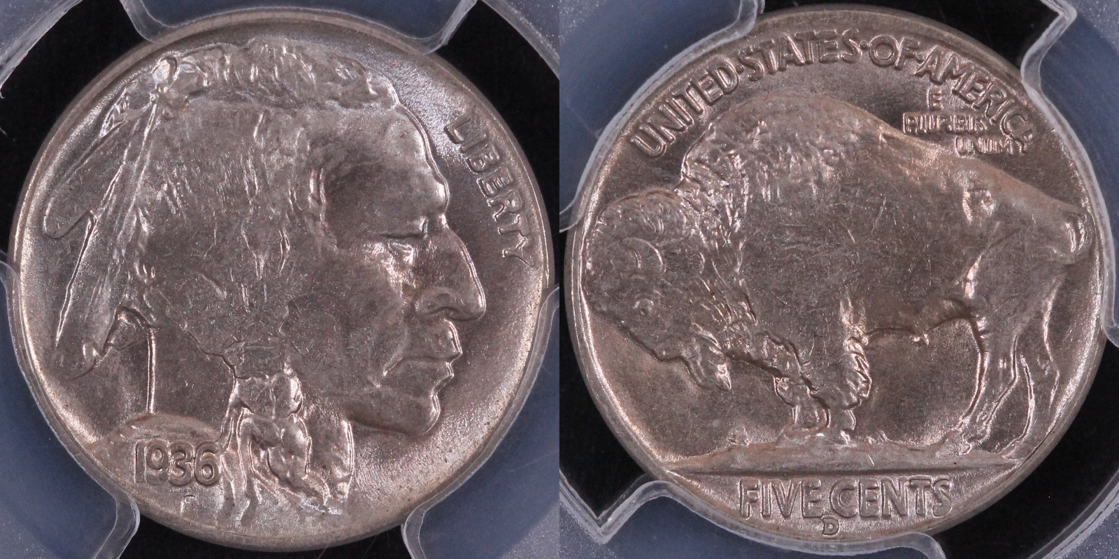 United States 1936-D Buffalo Nickel 5C, Denver Mint. PCGS graded MS64.