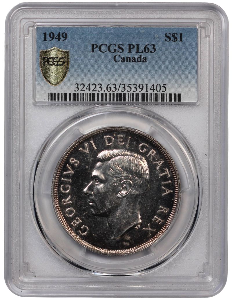 PCGS Graded PL63 Canada 1949 $1 Uncirculated Silver Coin
