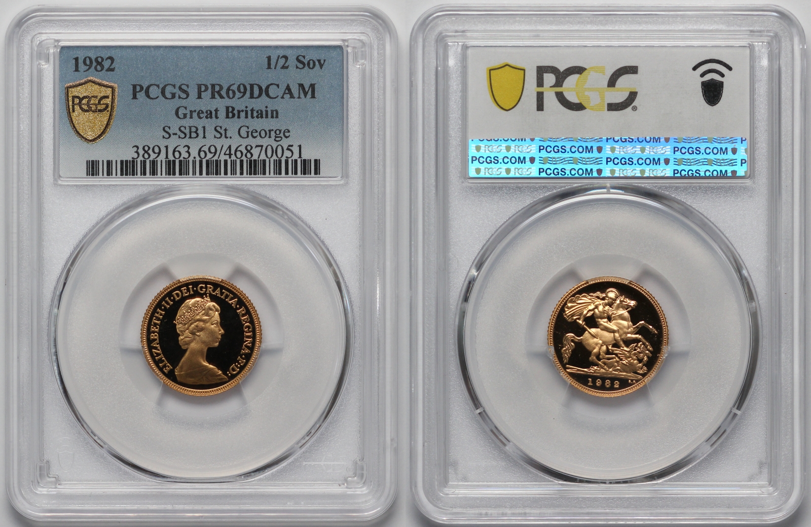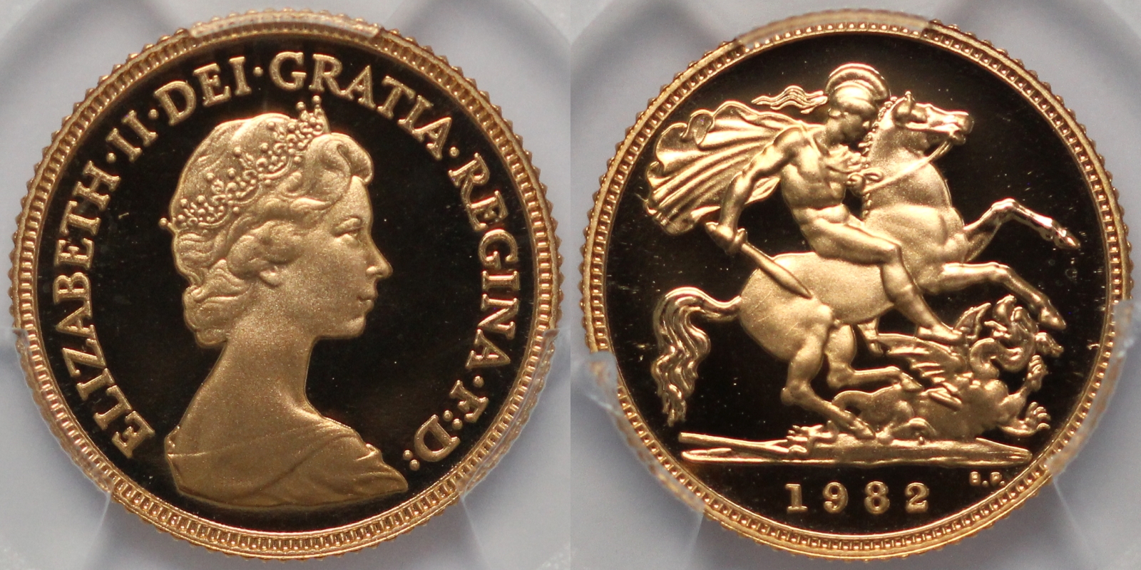 Great Britain Elizabeth II St George Gold Proof 1982 Half Sovereign. PCGS graded PR69DCAM.