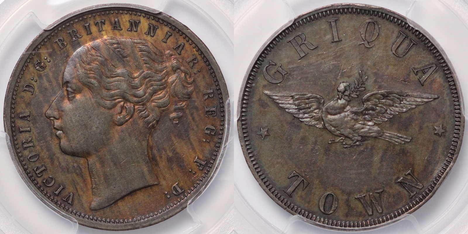 South Africa Griquatown Pattern Penny KM-X#9 from the 1890 L.C. Lauer Series. Struck by Messrs. Otto Nolte and Co., Berlin, Germany.