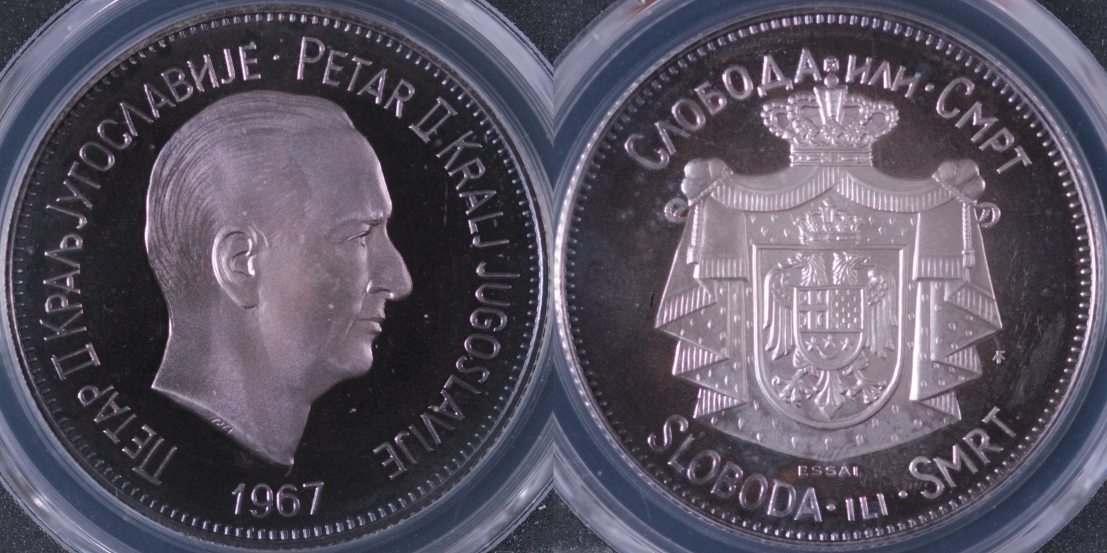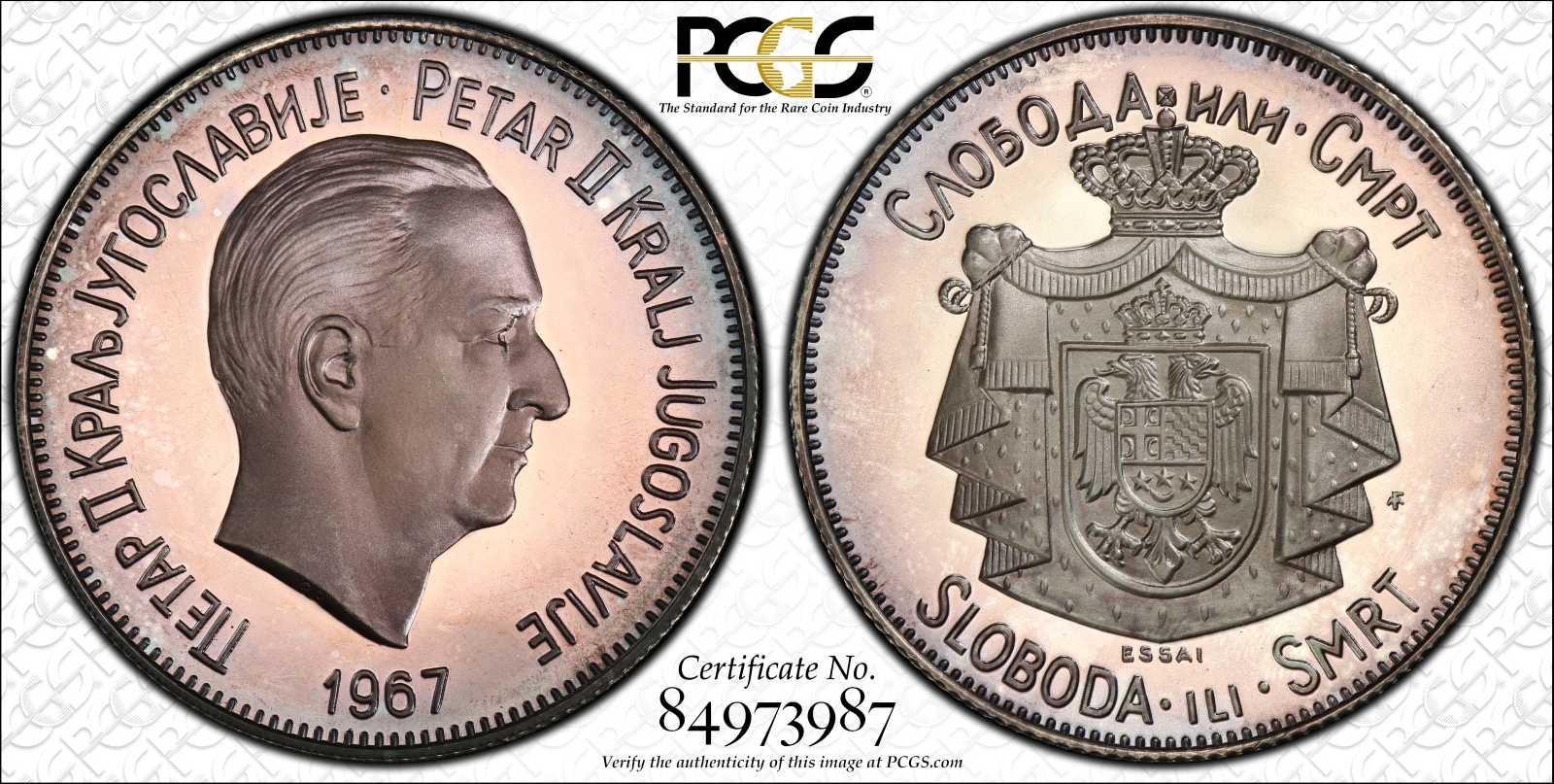 PCGS Graded SP67 Yugoslavia 1967 Peter II Specimen Crown Essai X#E3 Silver Coin