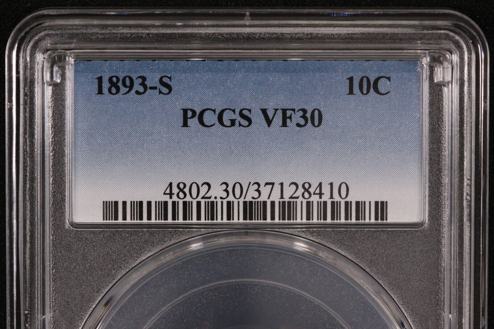 United States 1893-S Barber Dime, PCGS graded VF30. This coin is quite elusive at upper circulated grades.