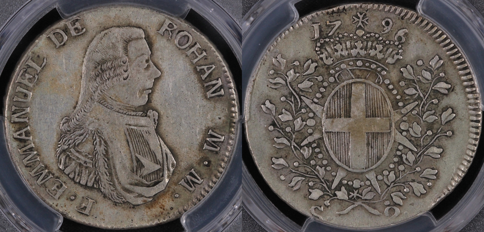 MALTA. Order of Malta. 2 Scudi, 1796. Emmanuel de Rohan. Dav.# 1610; KM# 343. Rare