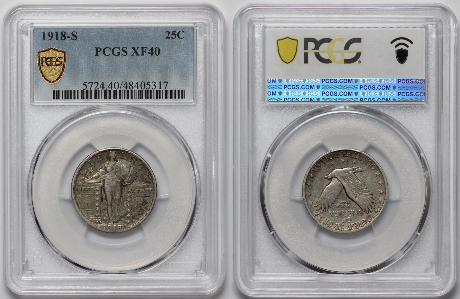 United States 1918-S Standing Liberty Quarter Dollar 25C, San Francisco mint, PCGS graded XF40 Extremely Fine.