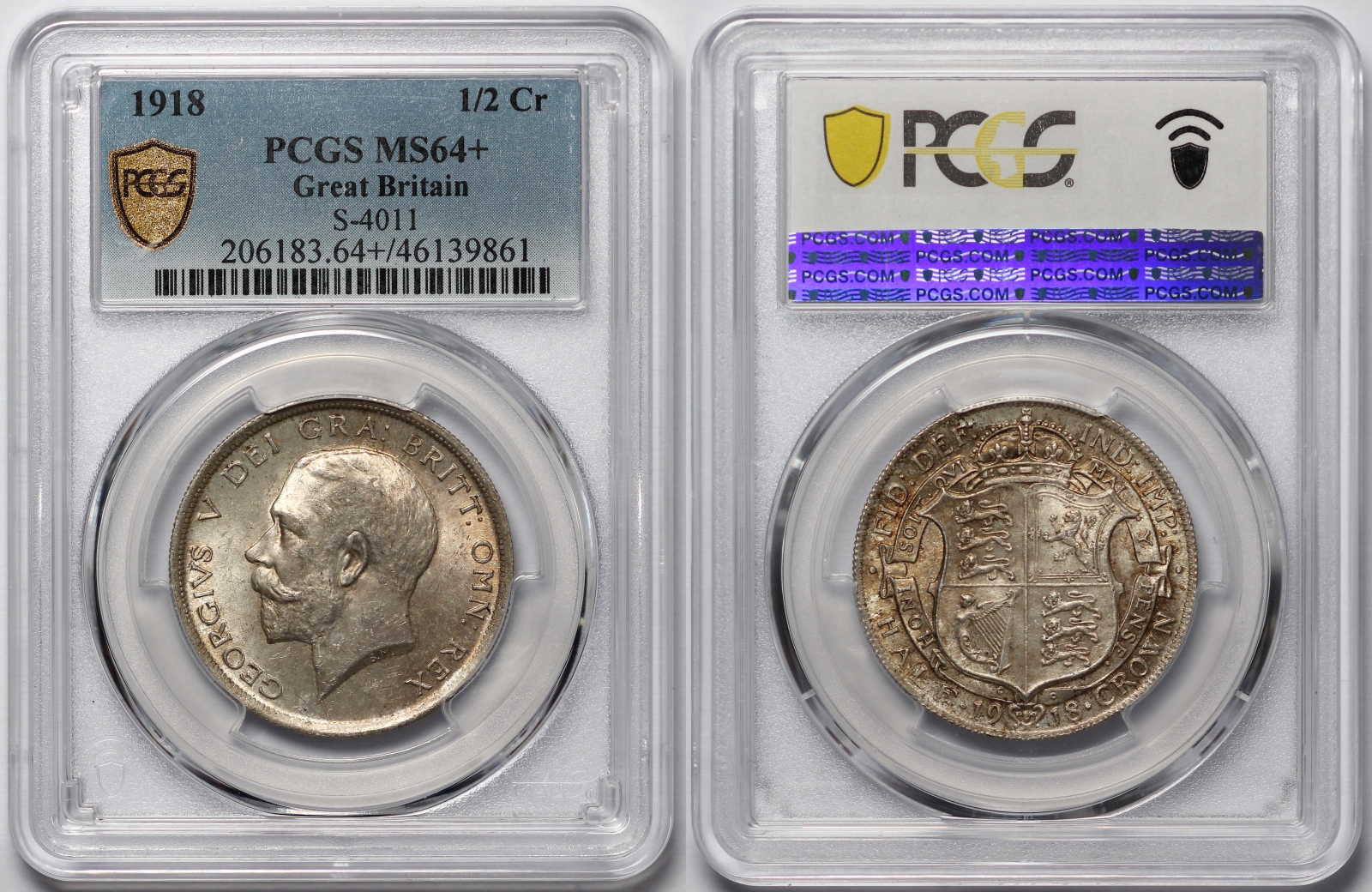 Great Britain 1918 Halfcrown. George V. First Coinage. S-4011. PCGS graded MS64+. Equal second finest graded by PCGS (Pop: 2/9).