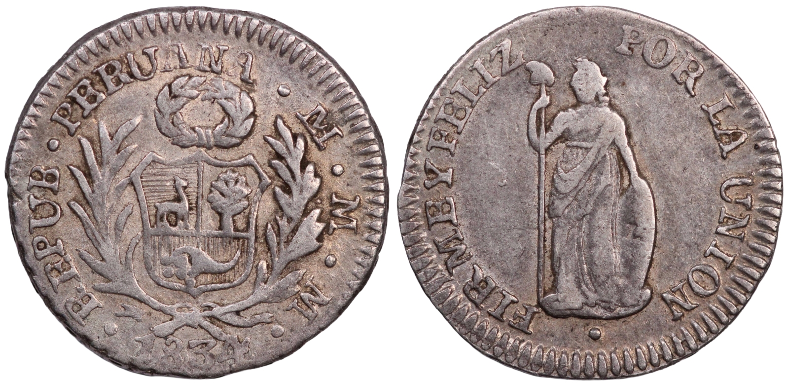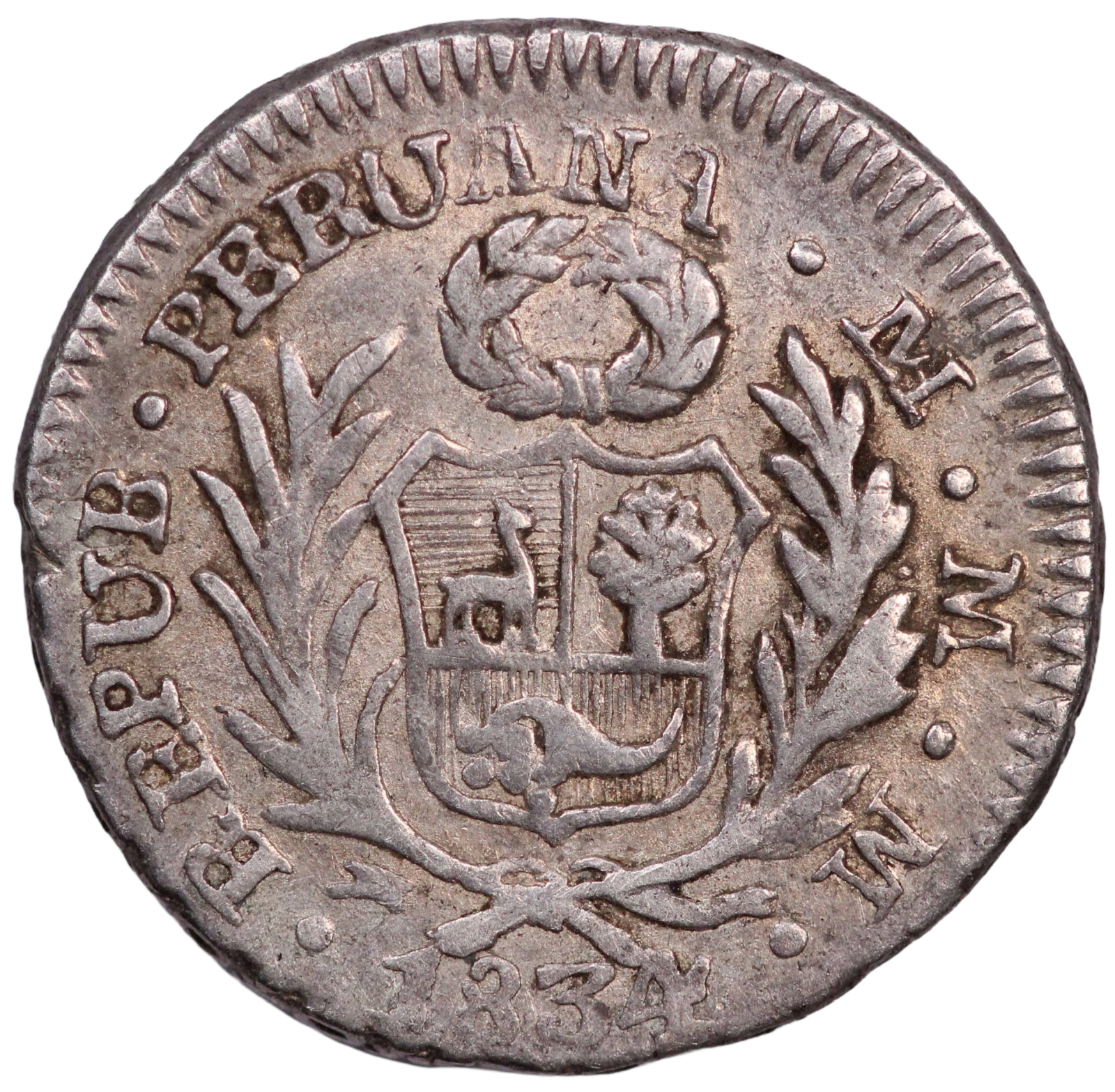 Peru 1834 MM 1/2 Real KM# 144.1 World Silver Coin
