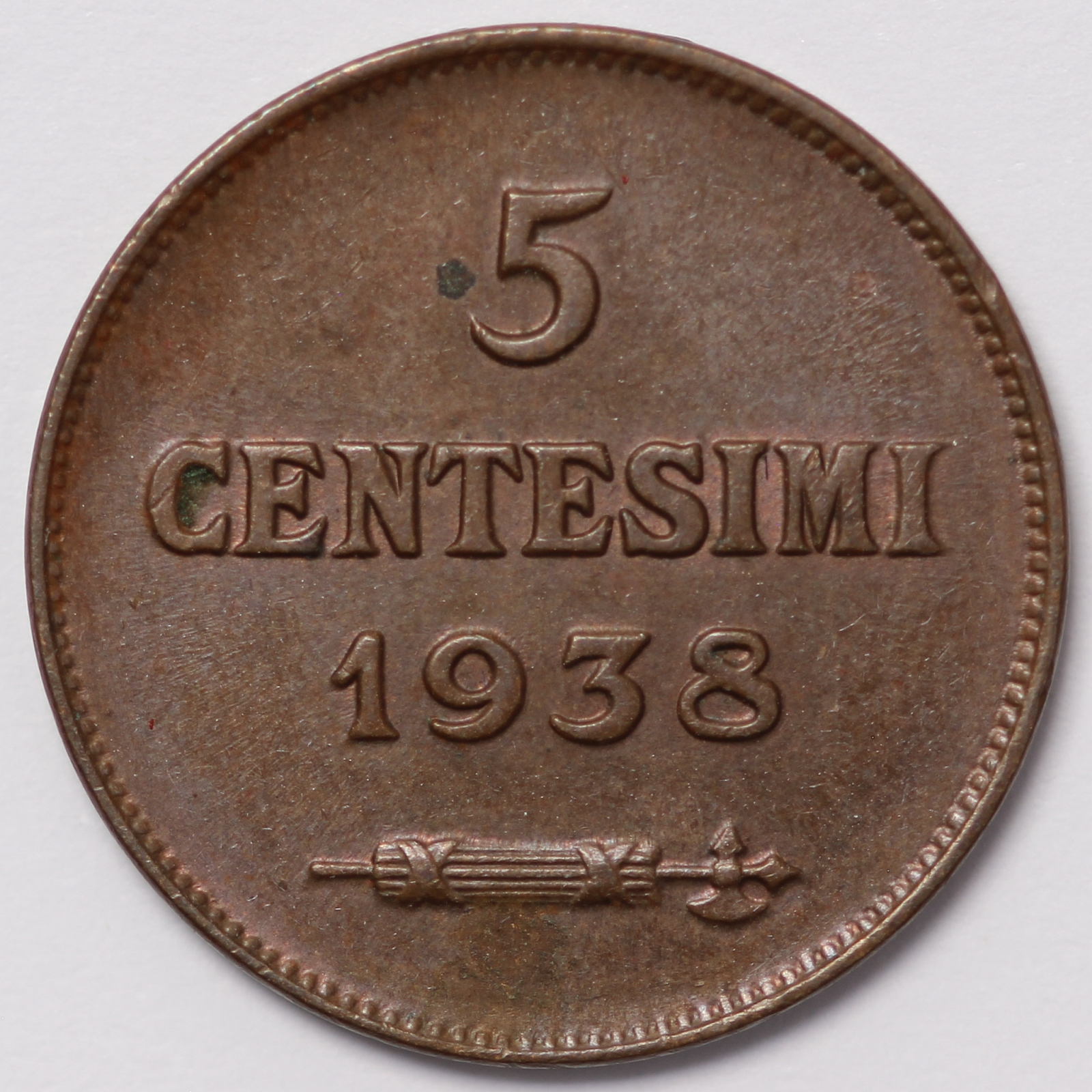 San Marino 1938-R 5 Centesimi. KM# 12.