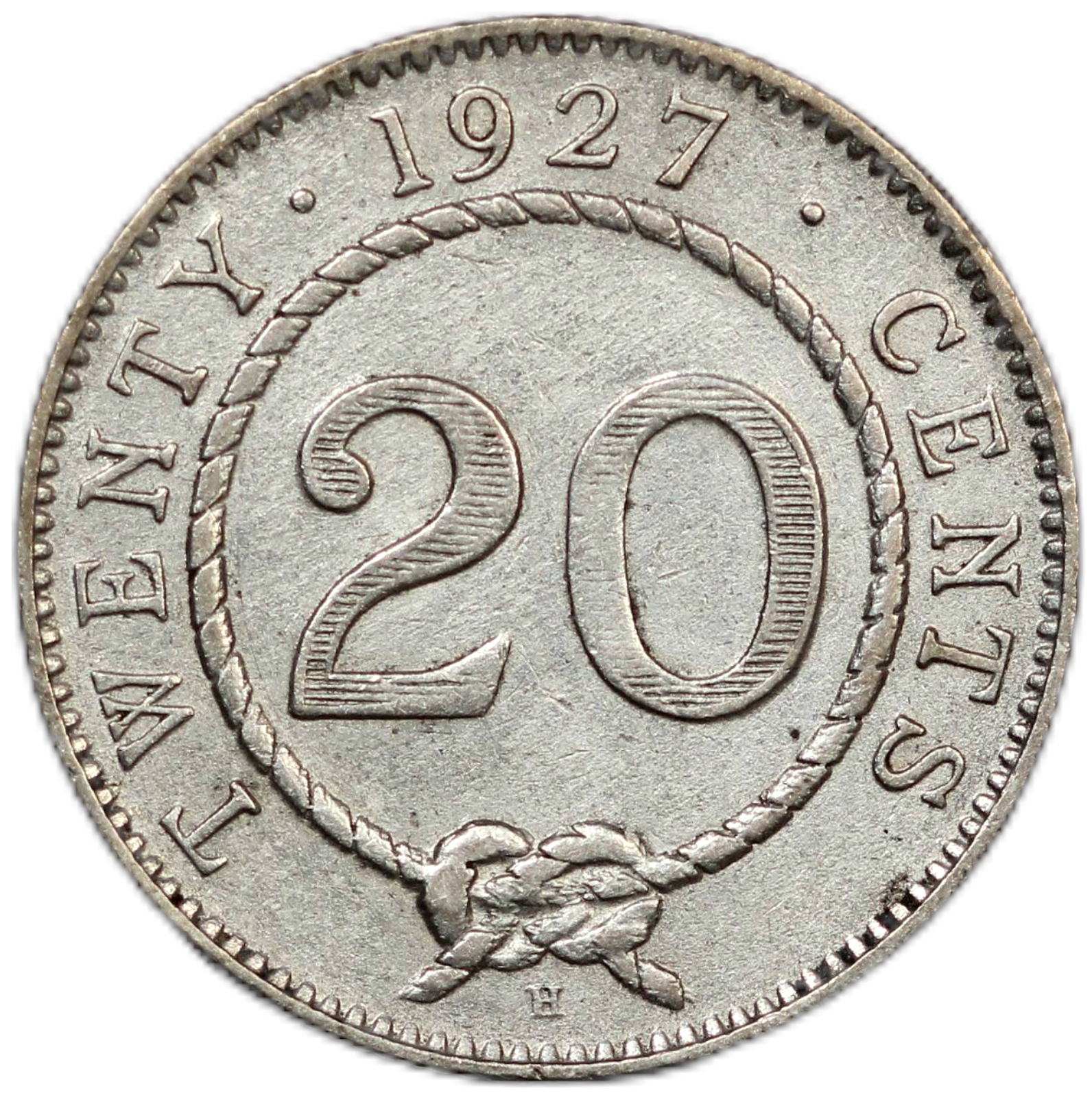 Sarawak 1927-H 20 Cents, C.V. Brooke Rajah, KM# 17a. One-year type. Scarce.