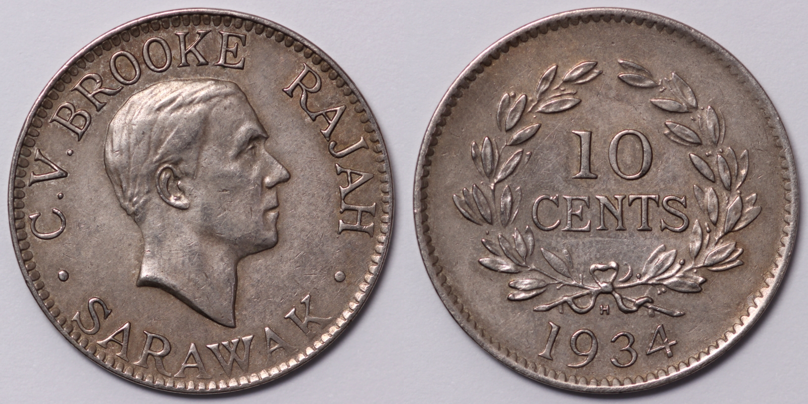 Sarawak 1934-H Ten Cents 10C KM# 16 CV Brooke Heaton Mint Copper-Nickel Coin. Refer to photo for condition.