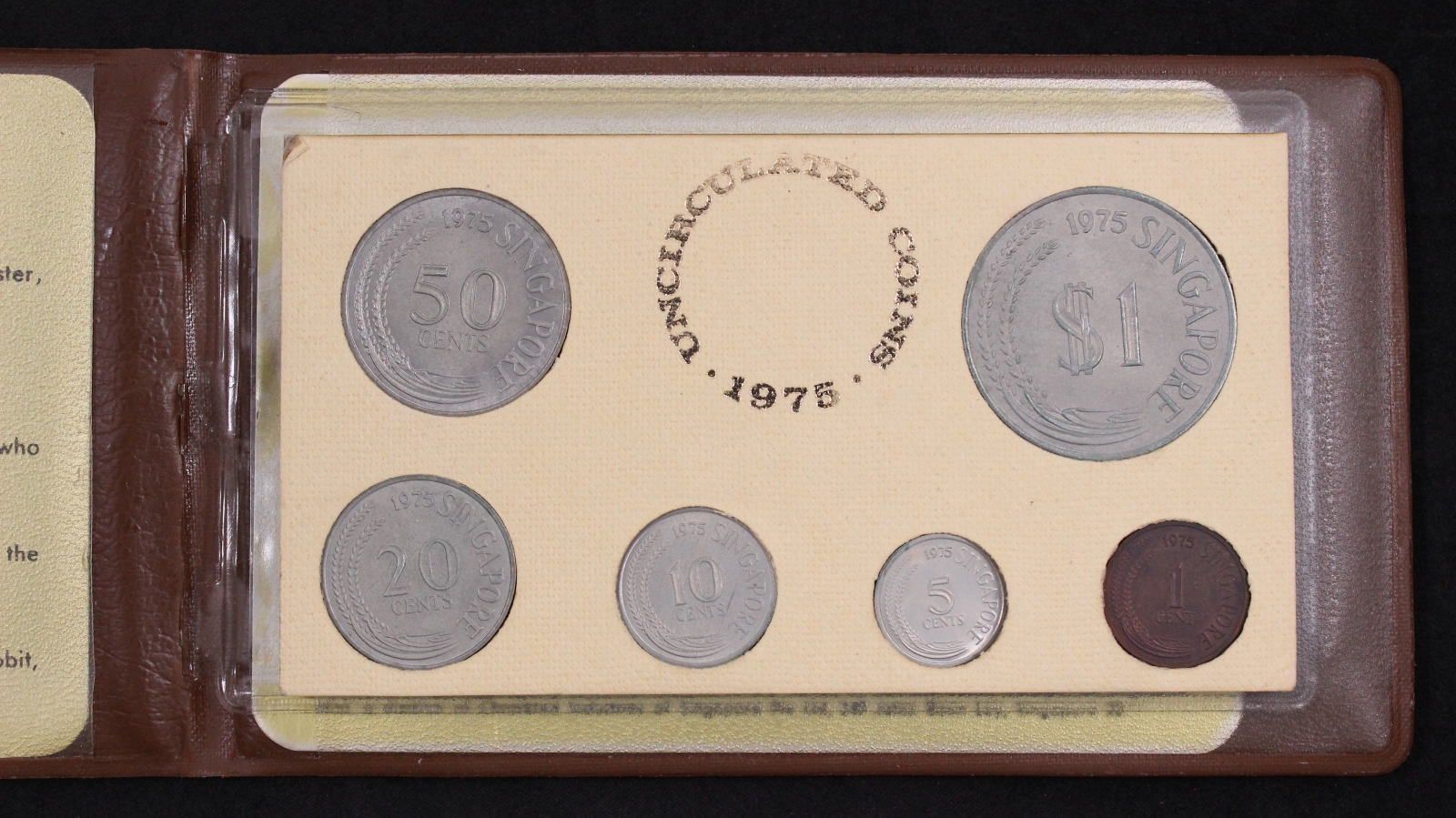 Singapore 1975 6-Coin Uncirculated Mint Set in brown wallet as issued.