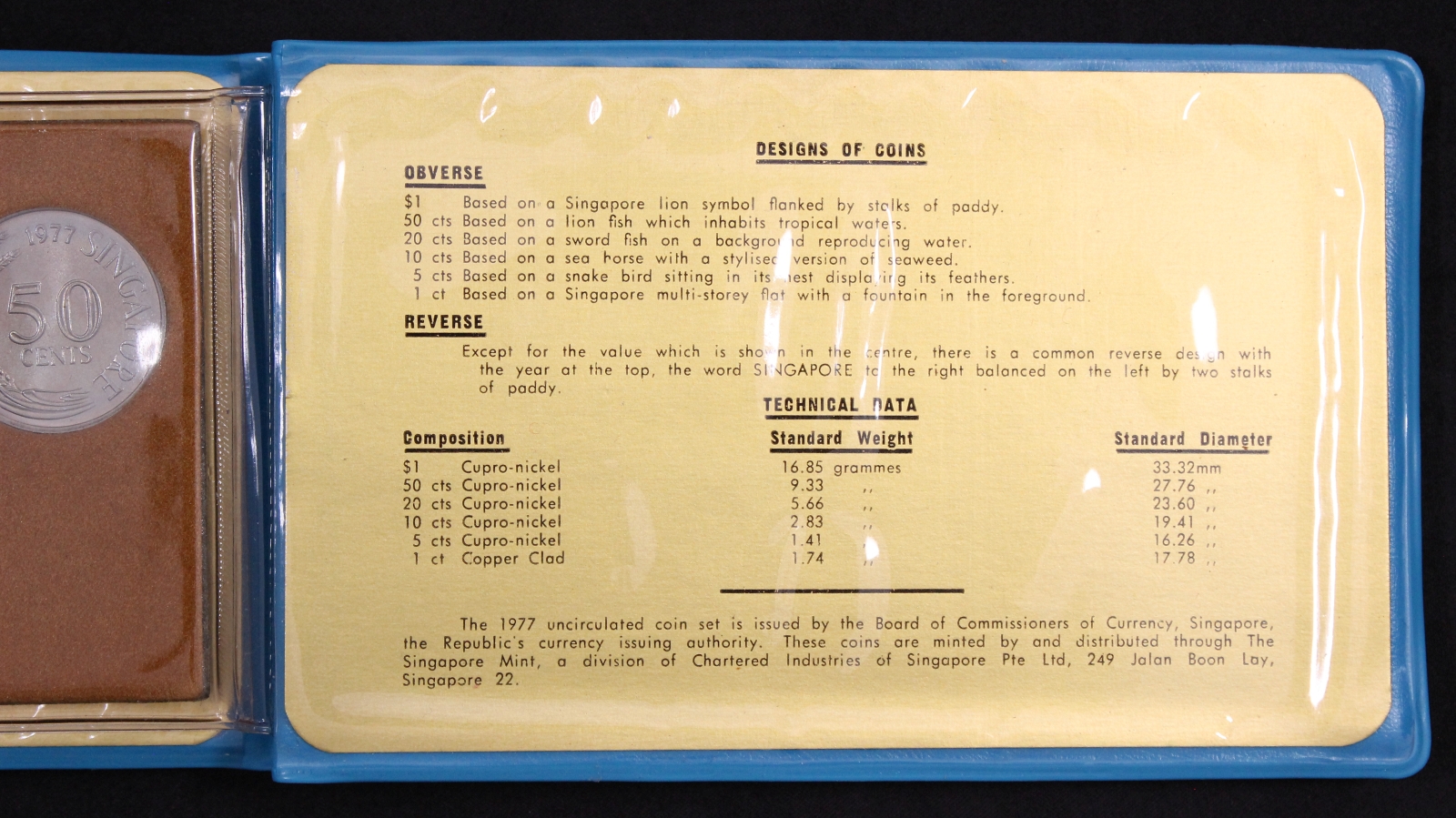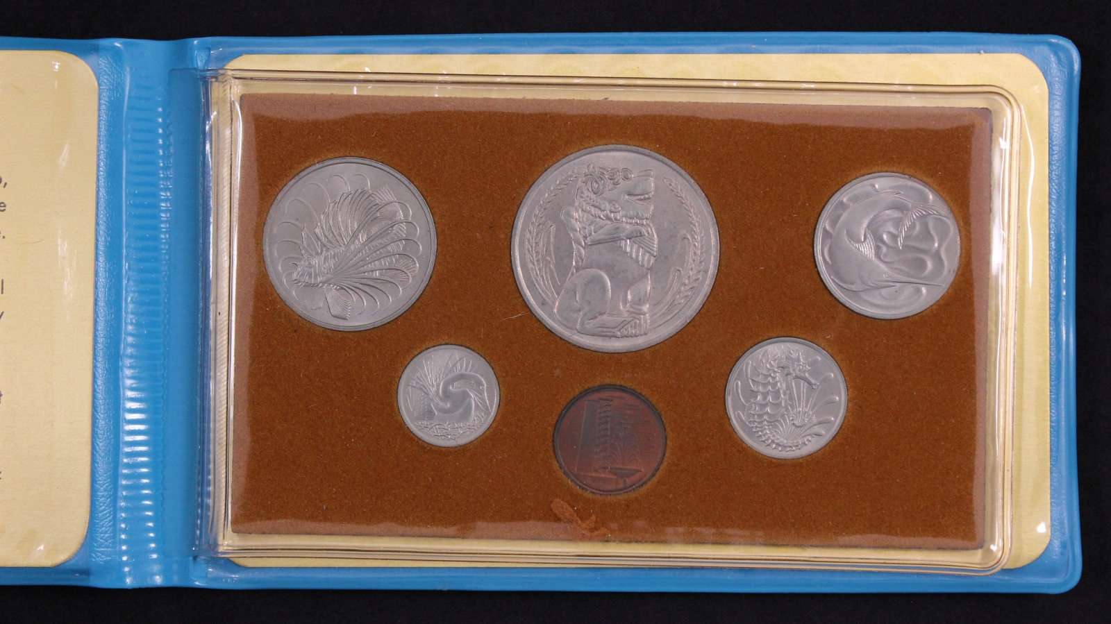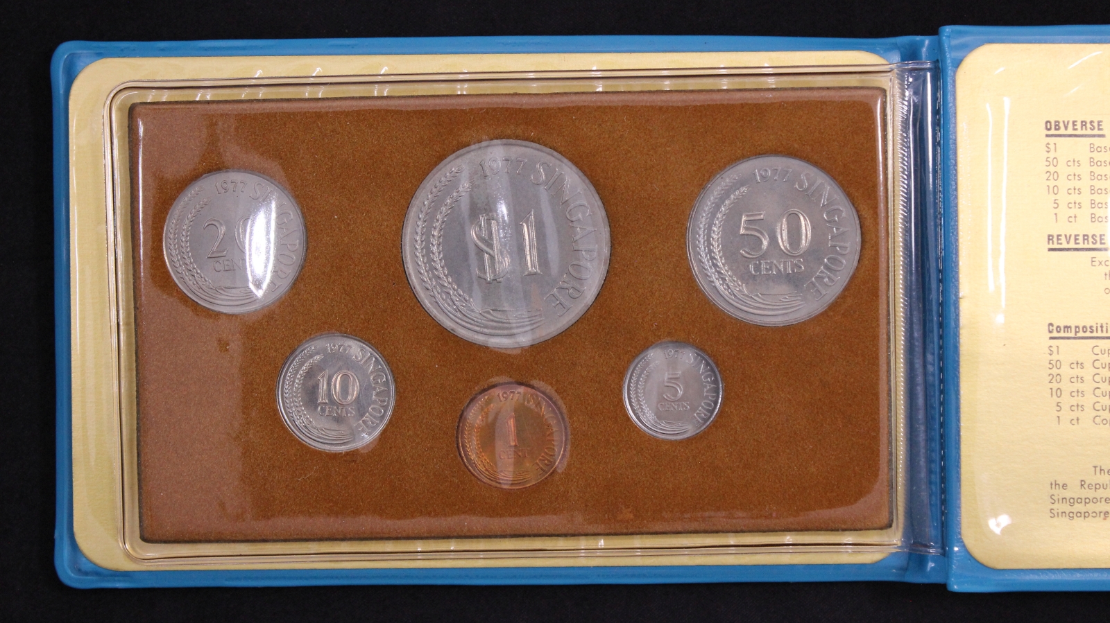 Singapore 1977 6-Coin Uncirculated Mint Set in blue wallet as issued.