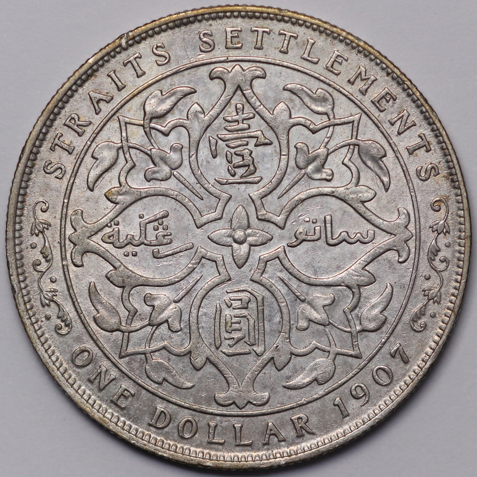 Straits Settlements 1907 One Dollar, Edward VII, KM#26.