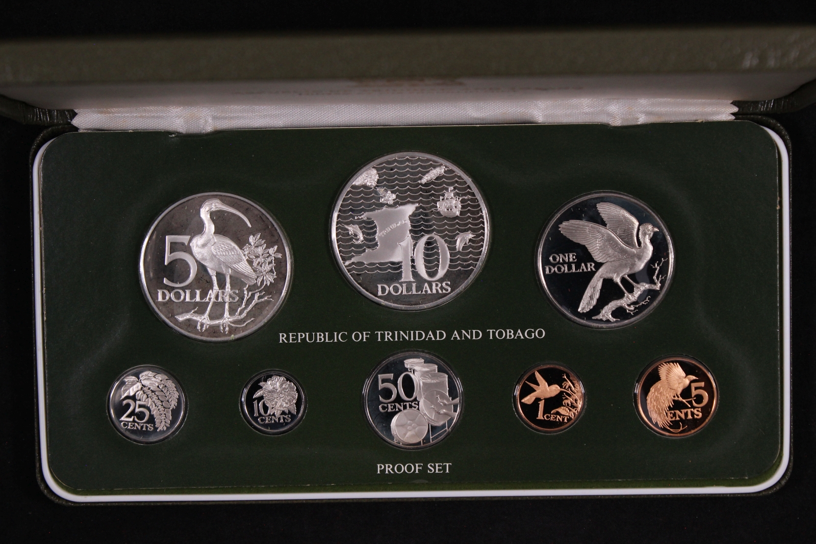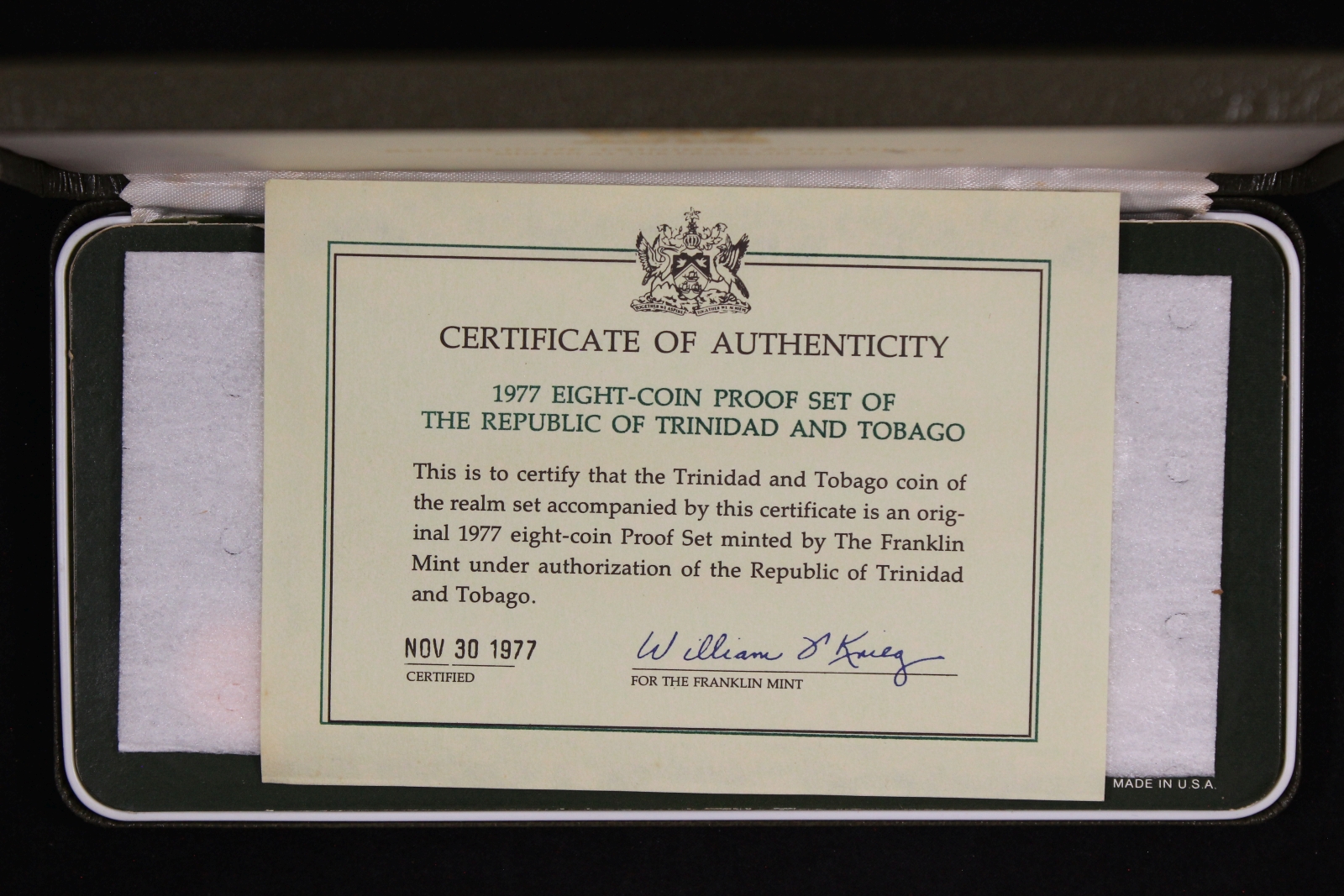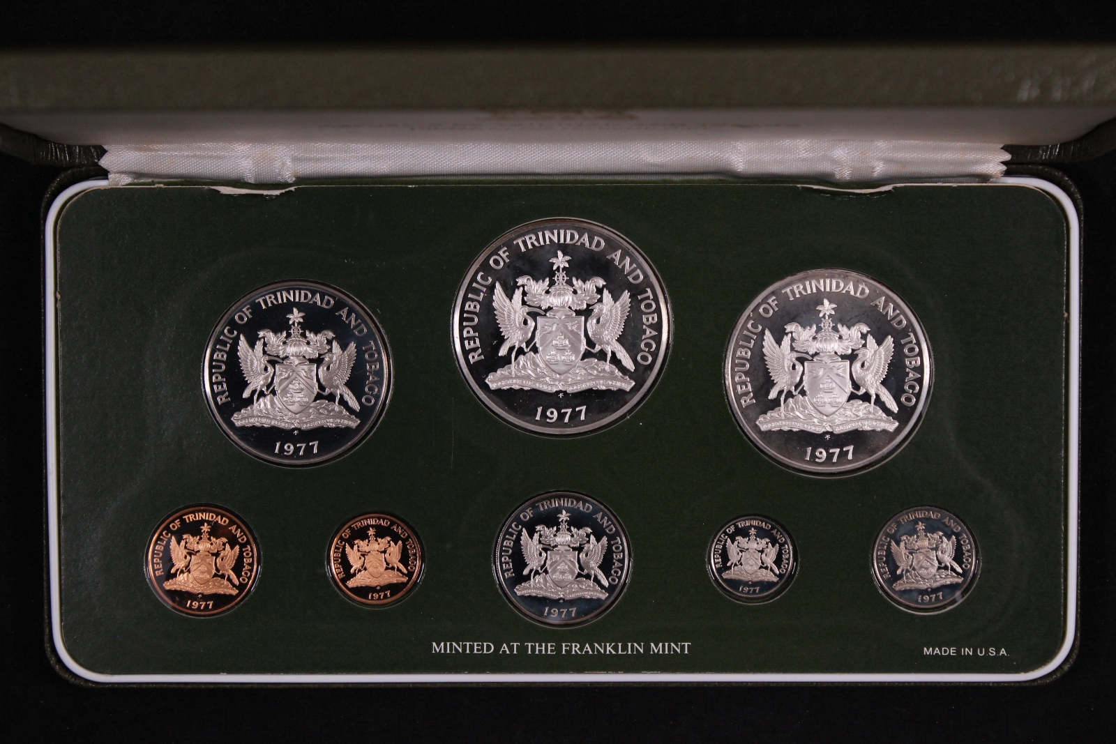 Trinidad & Tobago 1977 8-Coin Proof Set minted by The Franklin Mint.