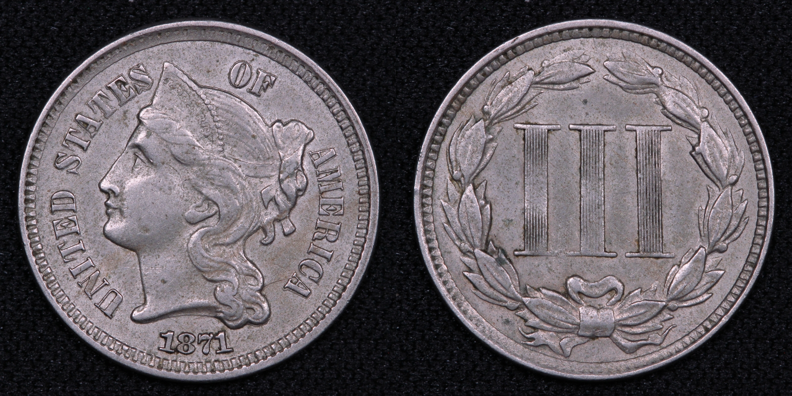 United States 1871 Liberty Head Three Cent Nickel 3C World Coin – Better Date