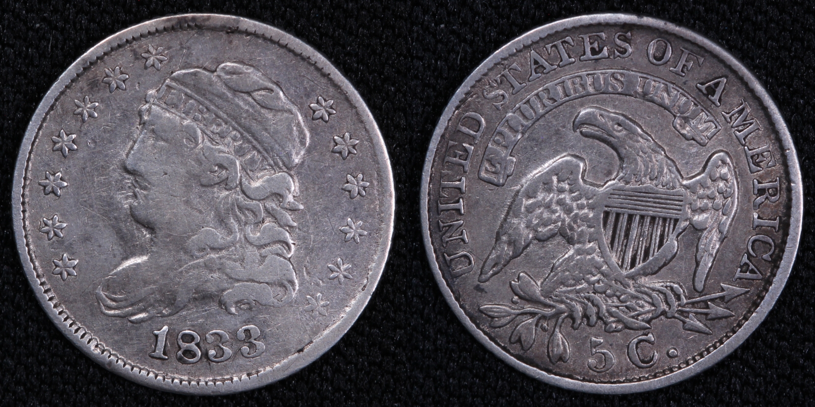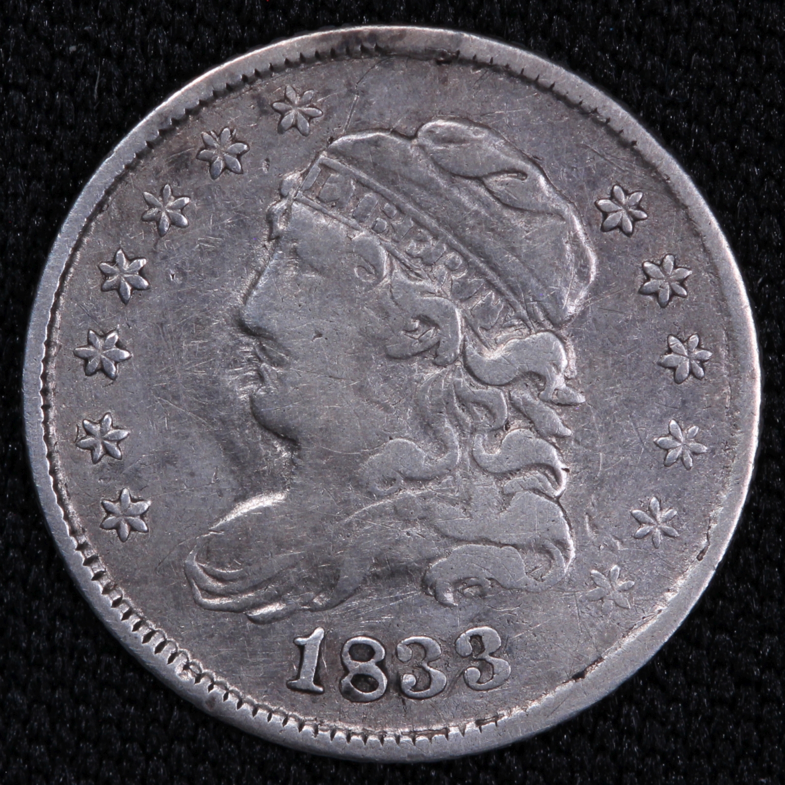 Silver Capped Bust Half Dime H10C, 1833, Philadelphia mint.