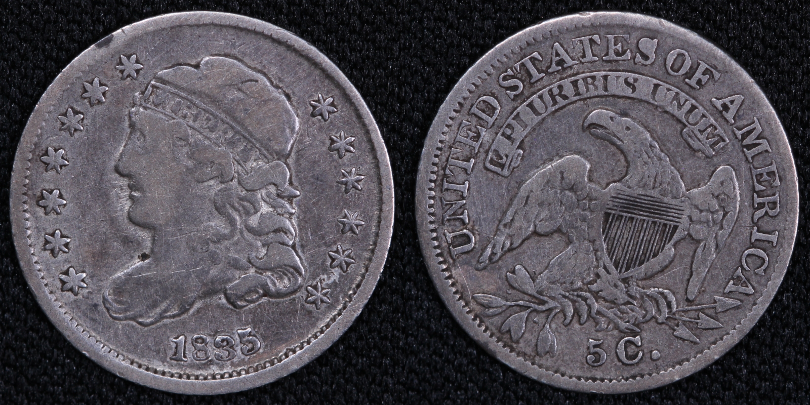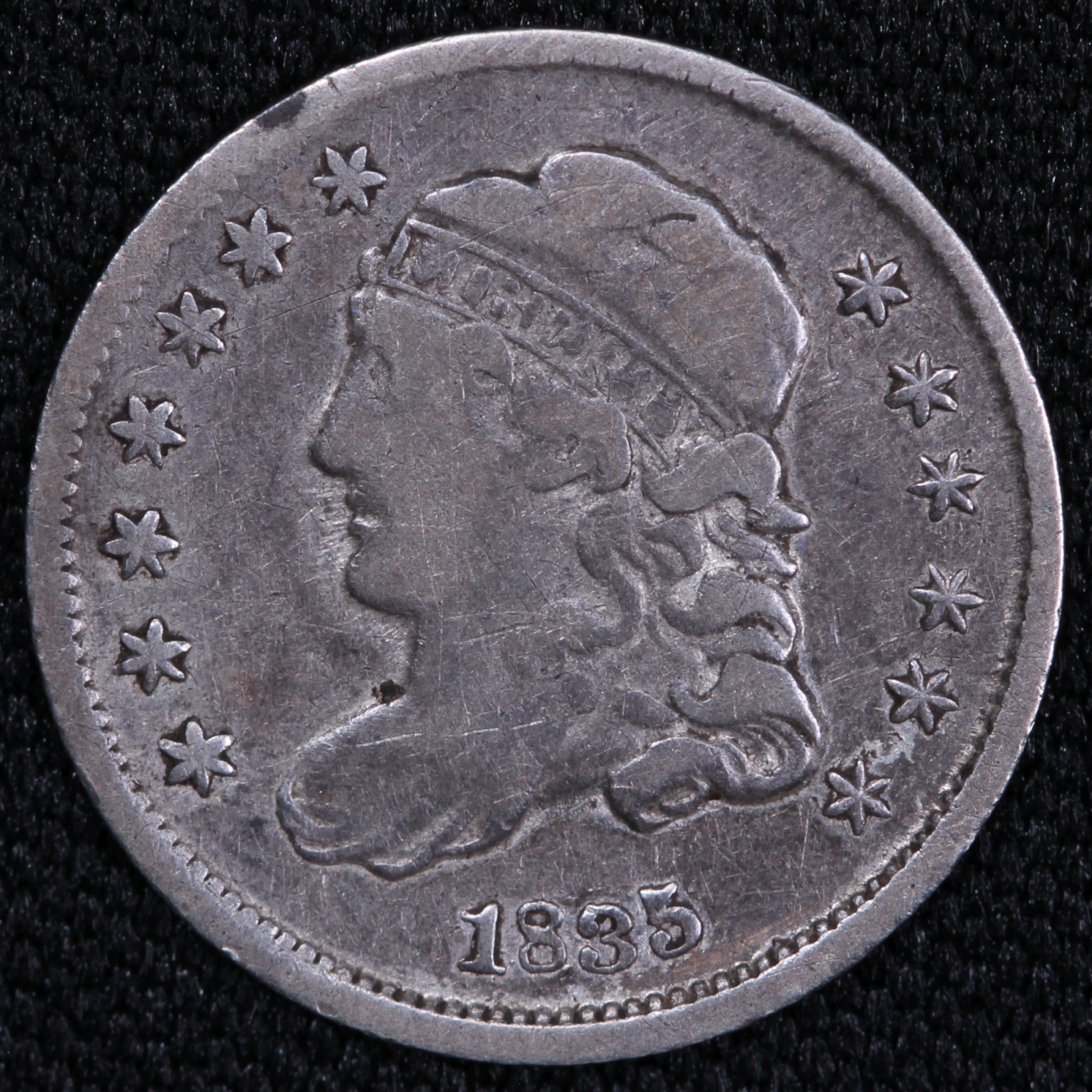 Silver Capped Bust Half Dime H10C, 1835 Small Date & Small 5C, Philadelphia mint.