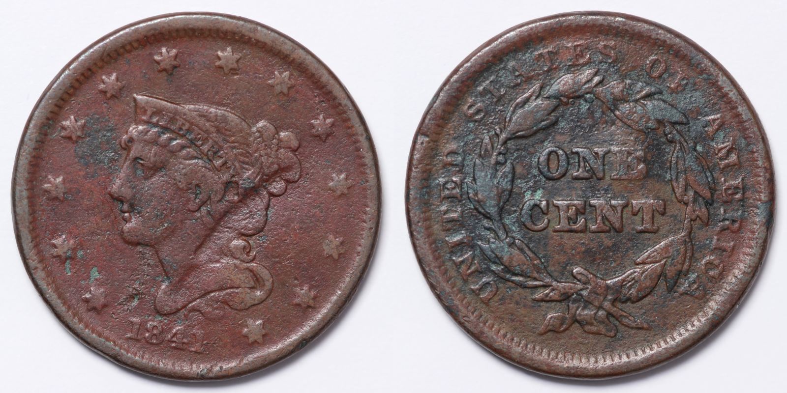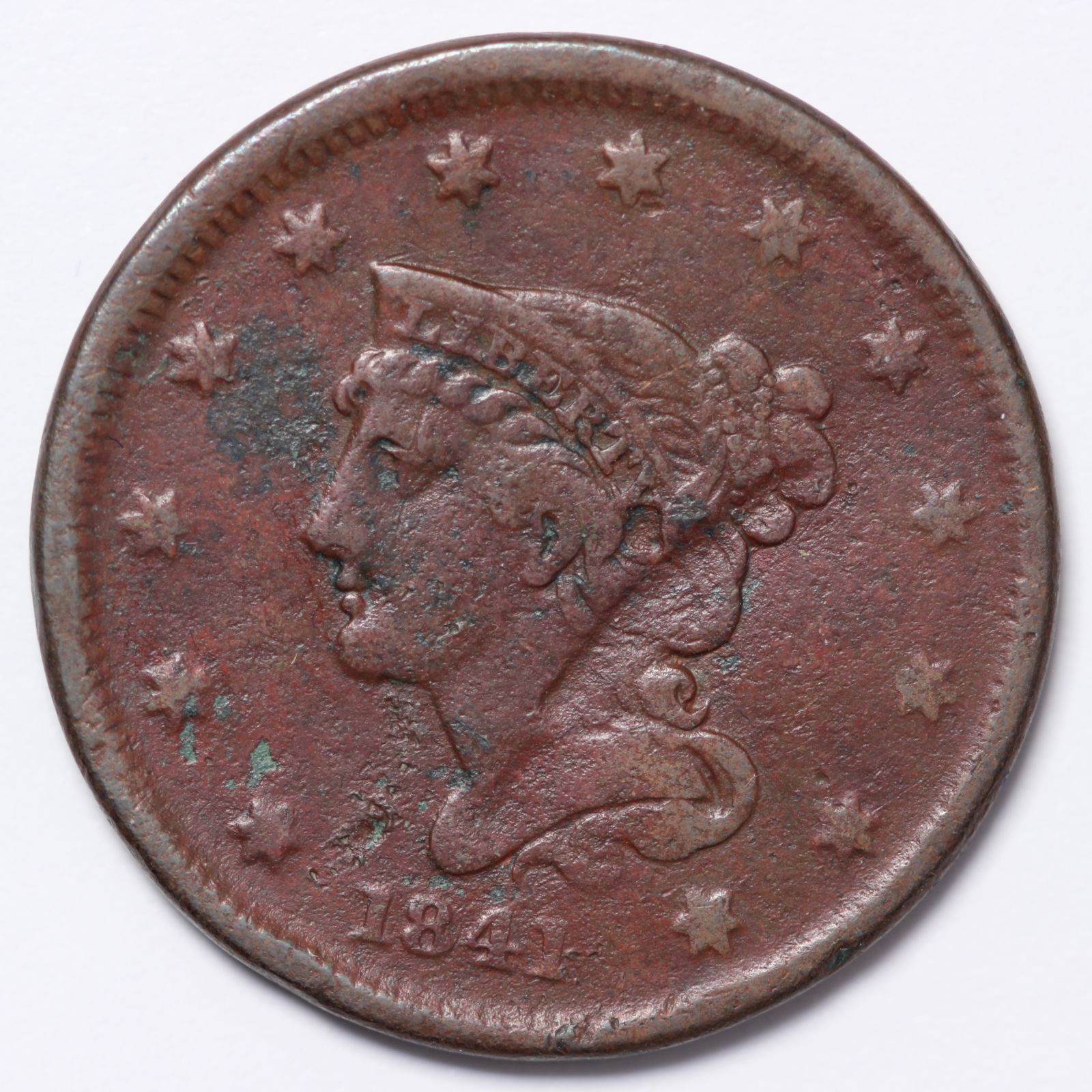 United States USA 1841 Liberty Braided Hair Large Cent 1C Copper Coin