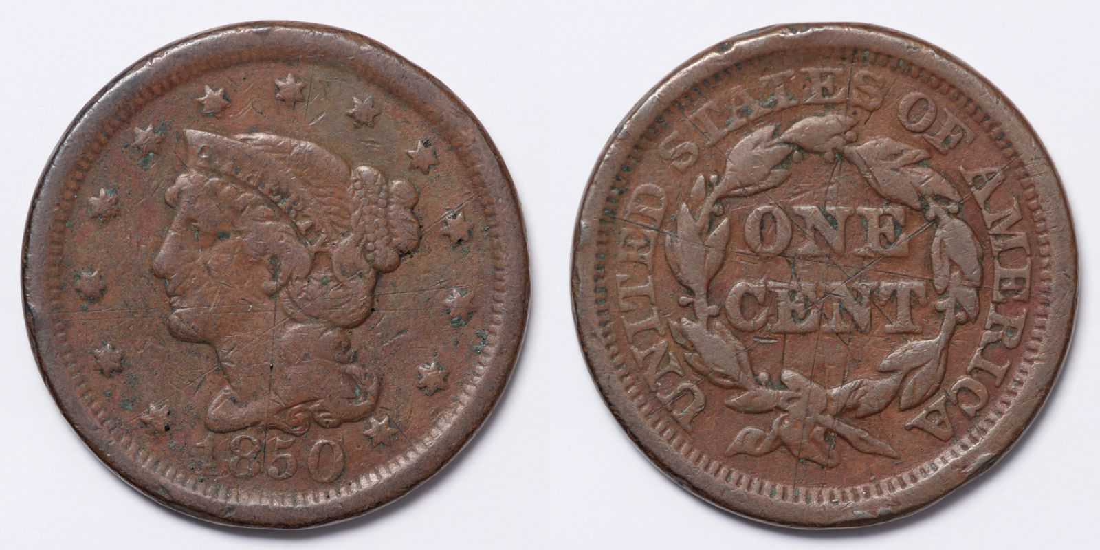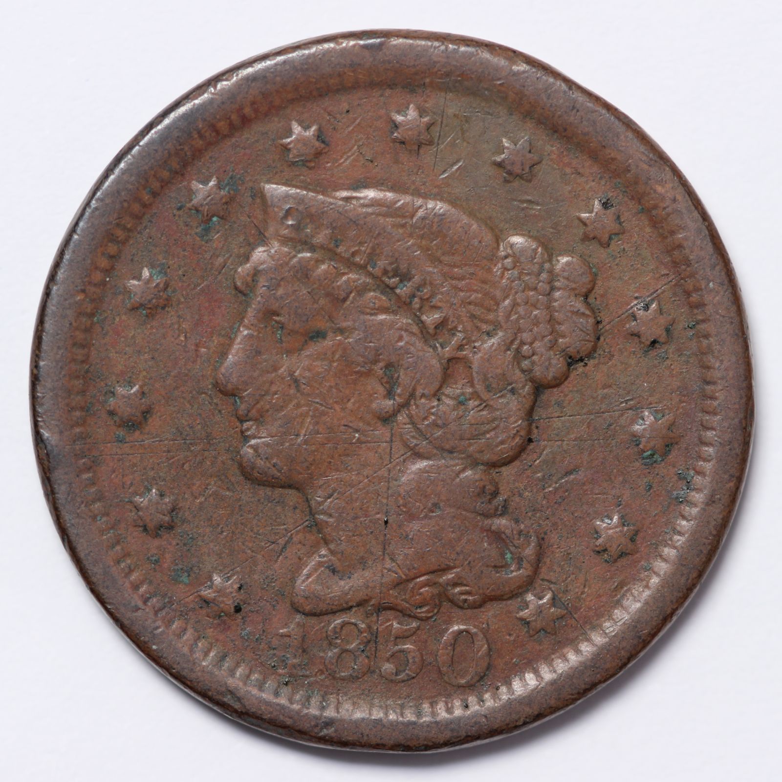 United States USA 1850 Liberty Braided Hair Large Cent 1C Copper Coin