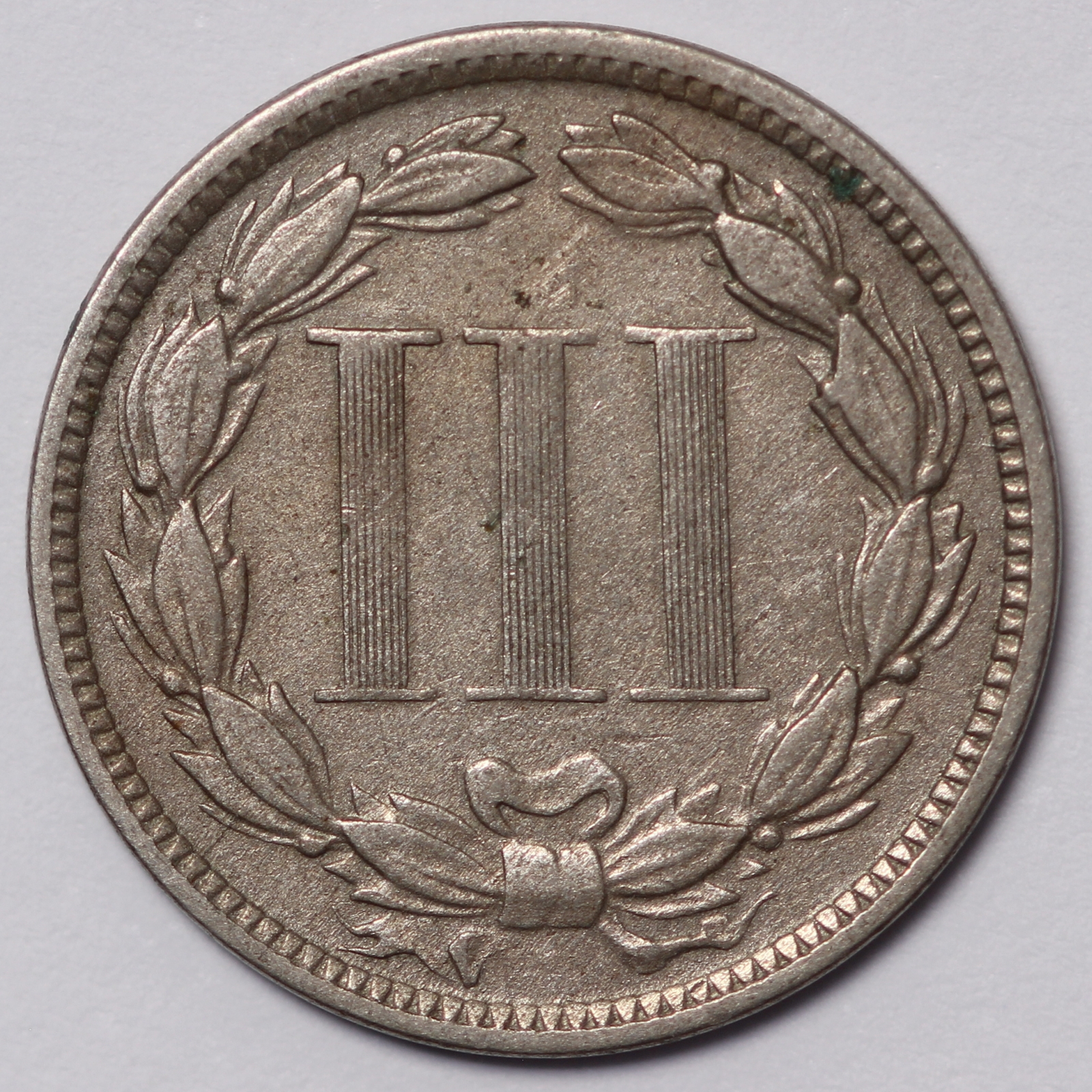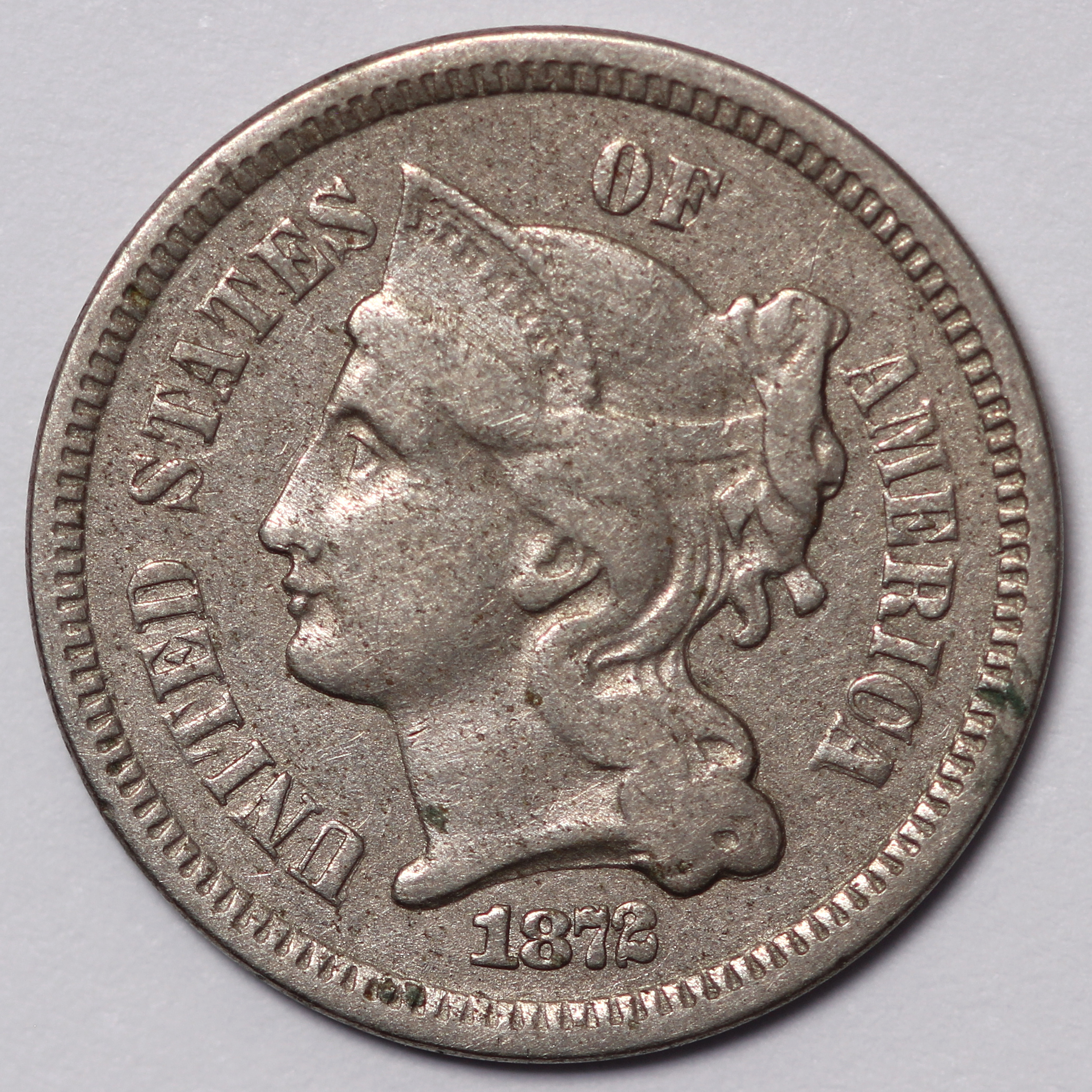 Nickel three cent piece, 1872, Philadelphia mint.