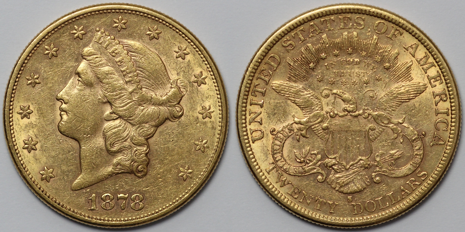 United States 1878-S Liberty Head Double Eagle $20. San Francisco mint.