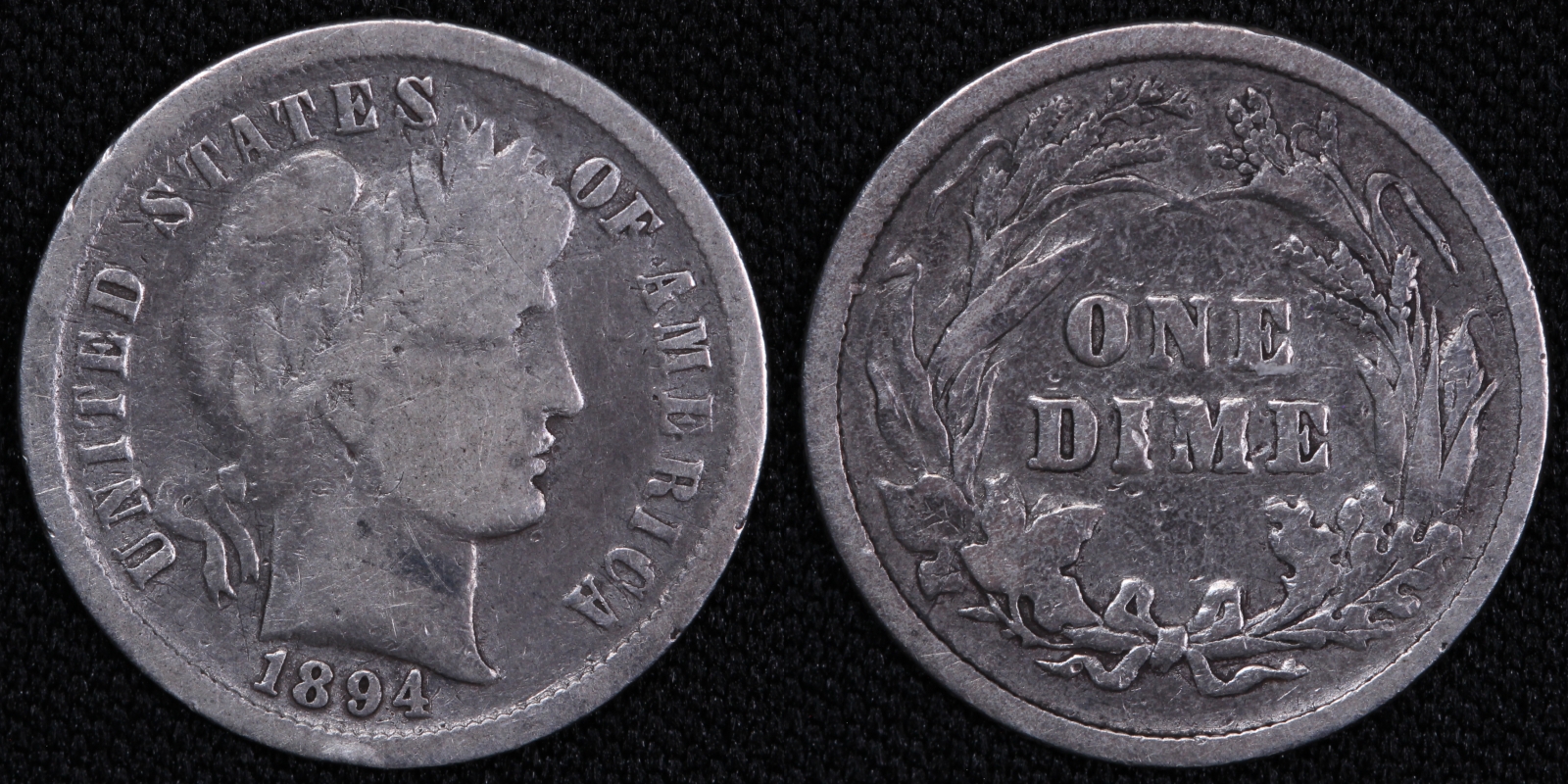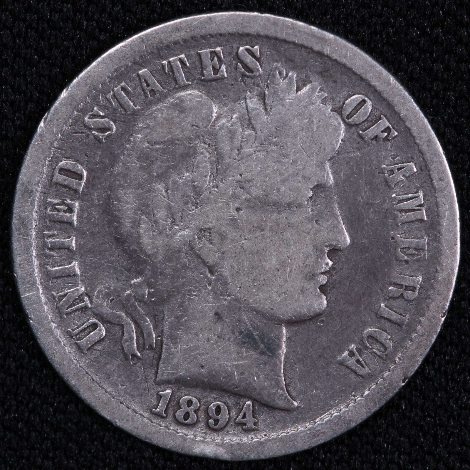 Silver Barber Dime, 1894, Philadelphia mint.