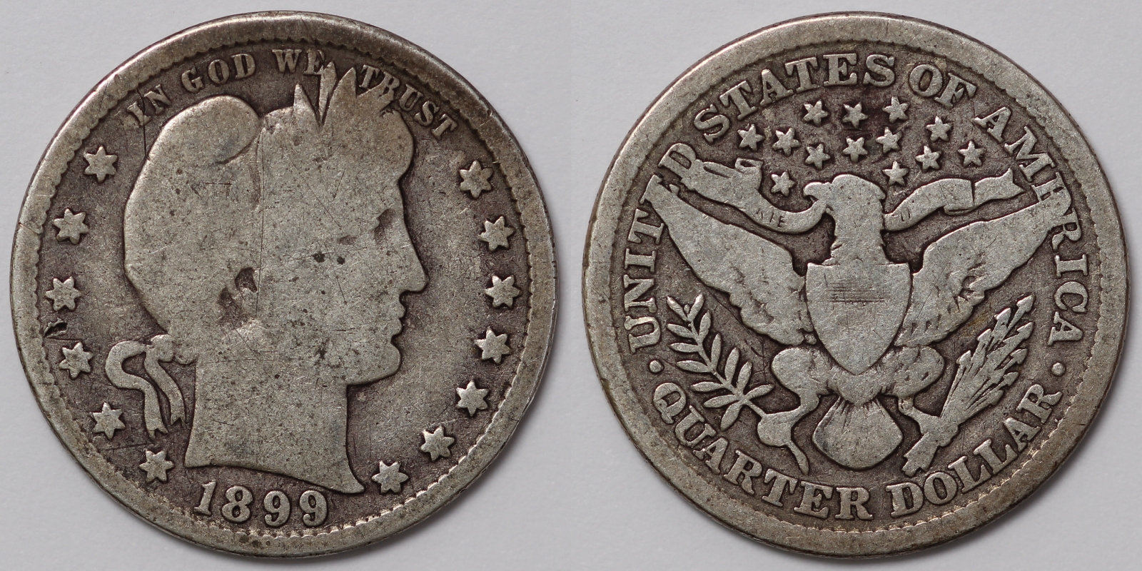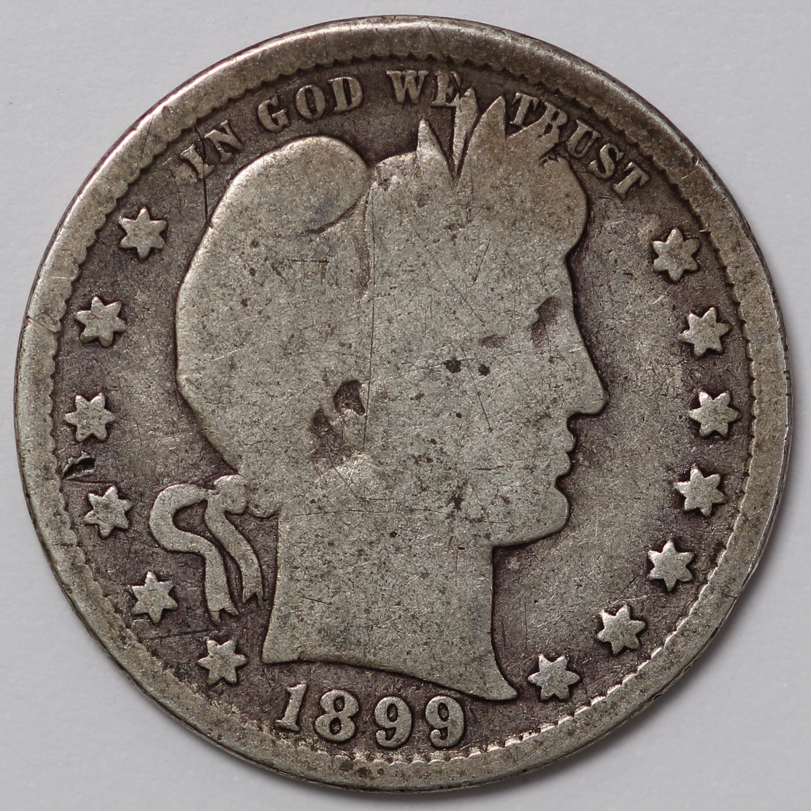 United States USA 1899 Barber Quarter Dollar 25C Philadelphia Mint Silver Coin