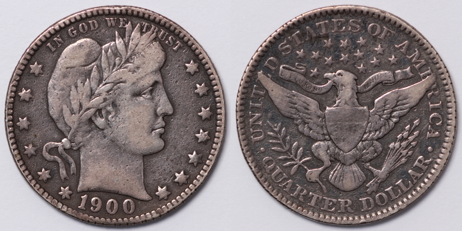 United States USA 1900 Barber Quarter Dollar 25C Philadelphia Mint Silver Coin