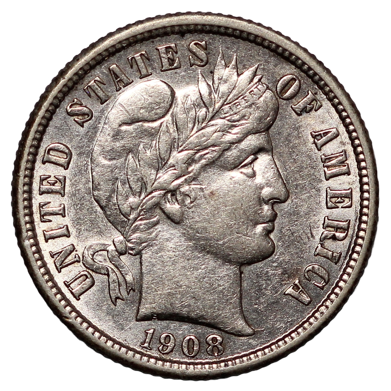 United States 1908-S Barber Dime 10c. San Francisco mint.