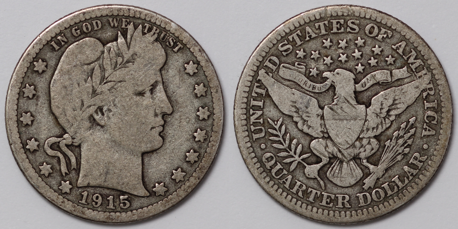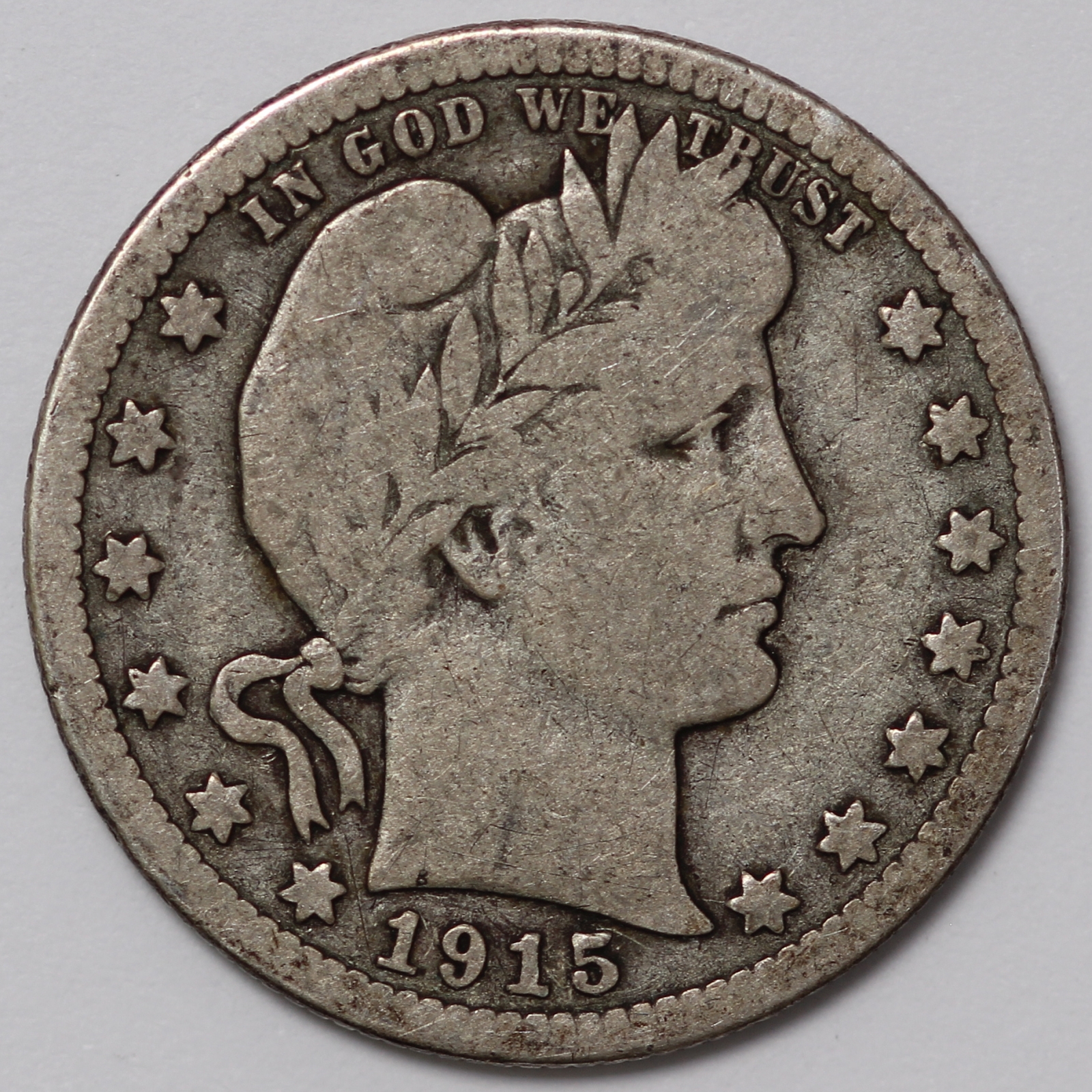 United States USA 1915 Barber Quarter Dollar 25C Philadelphia Mint Silver Coin
