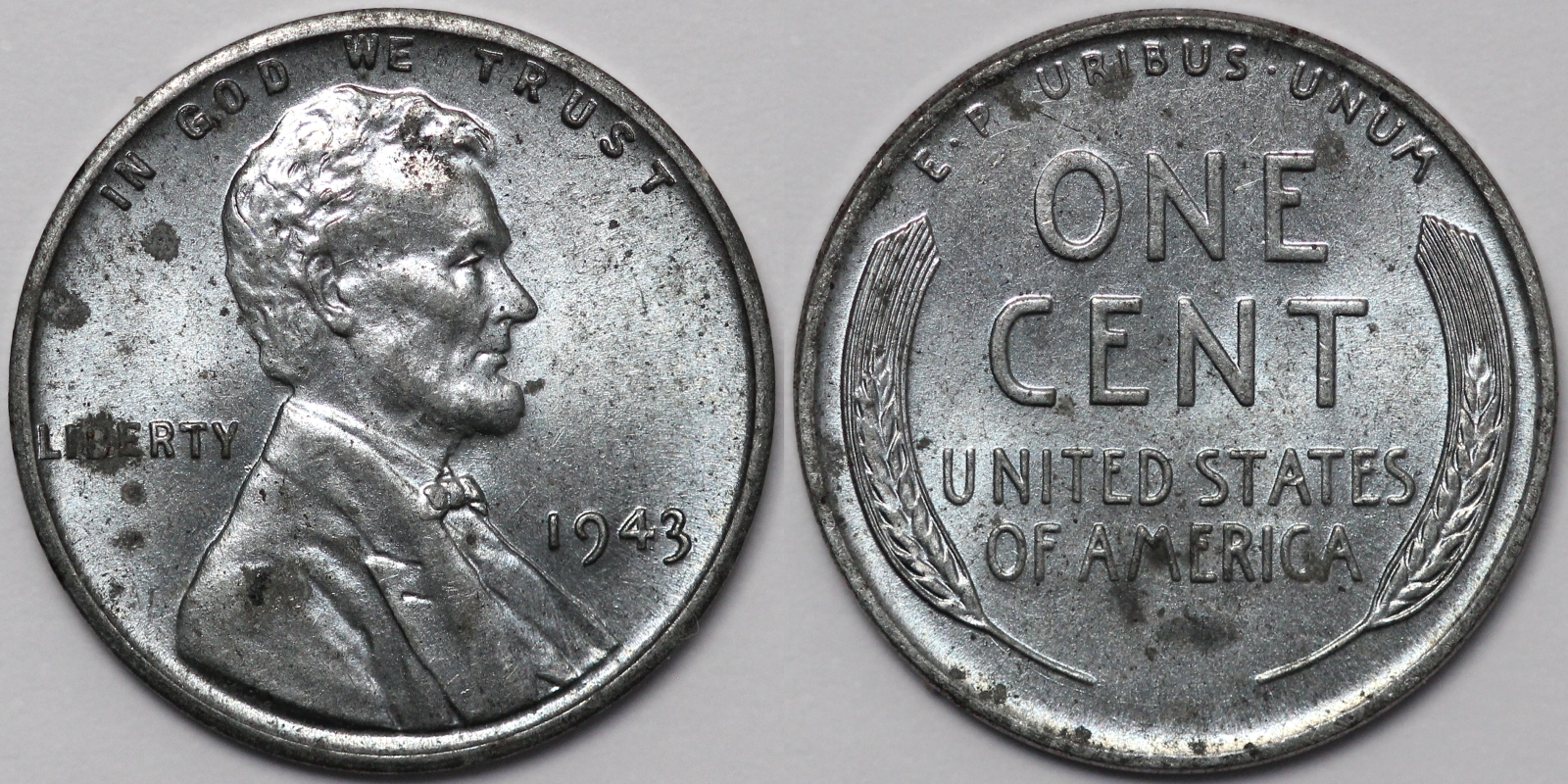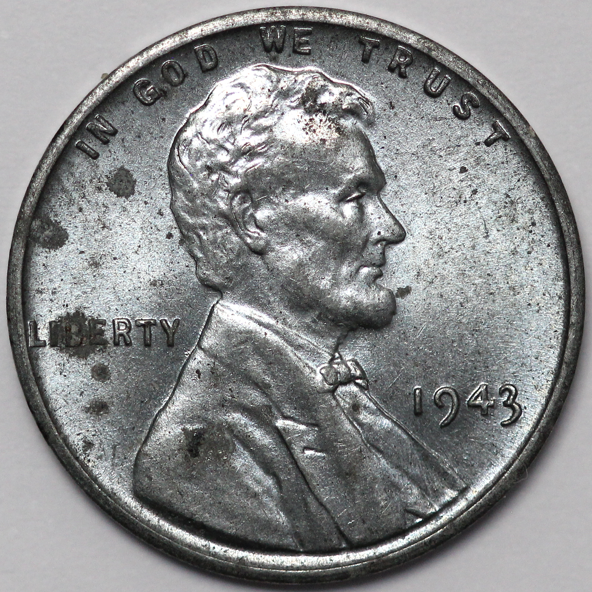 United States 1943 Lincoln Wheat Cent, zinc-coated steel, wartime coin.