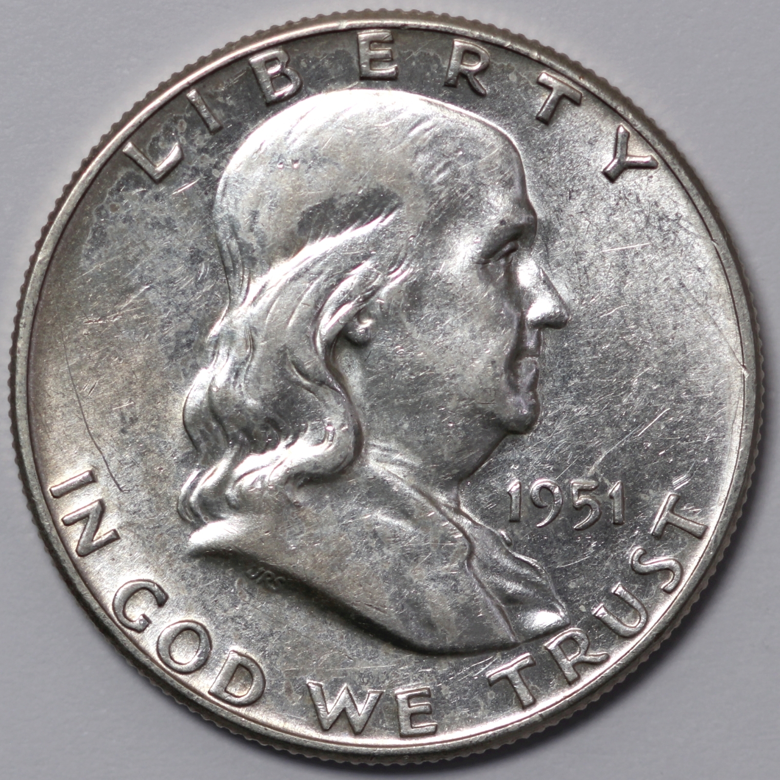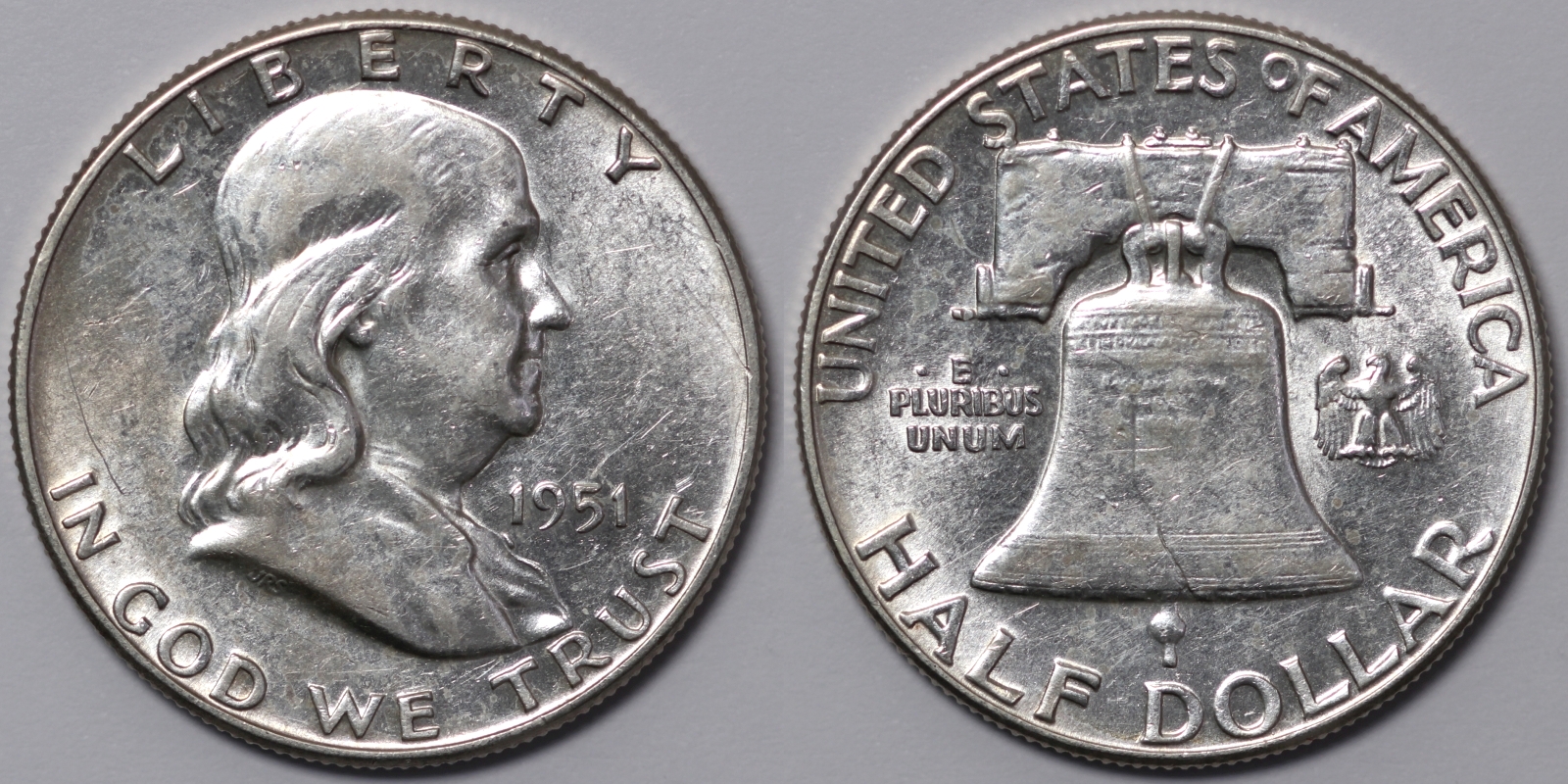 United States USA 1951 Franklin Half Dollar 50C Philadelphia Mint Silver Coin. Refer to photos for condition.