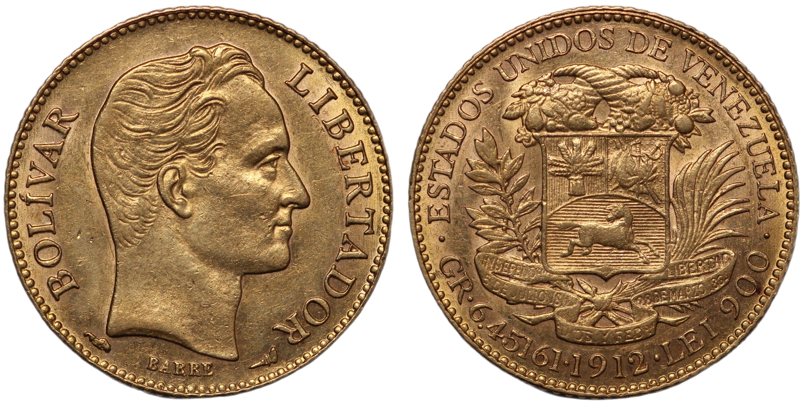 Venezuela 1912 20 Bolívares, Paris mint, Y# 32.