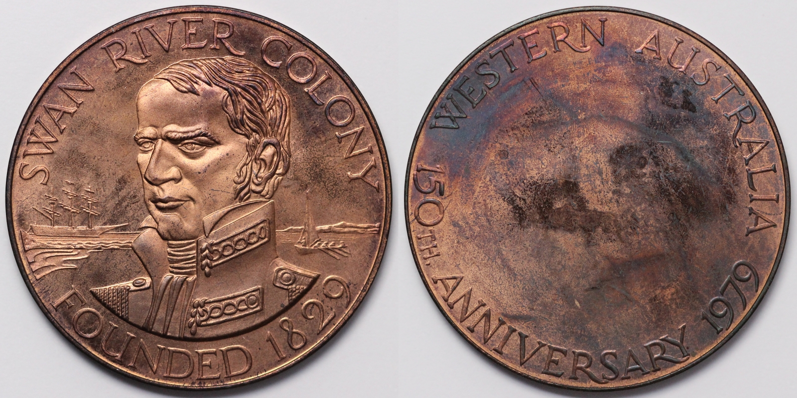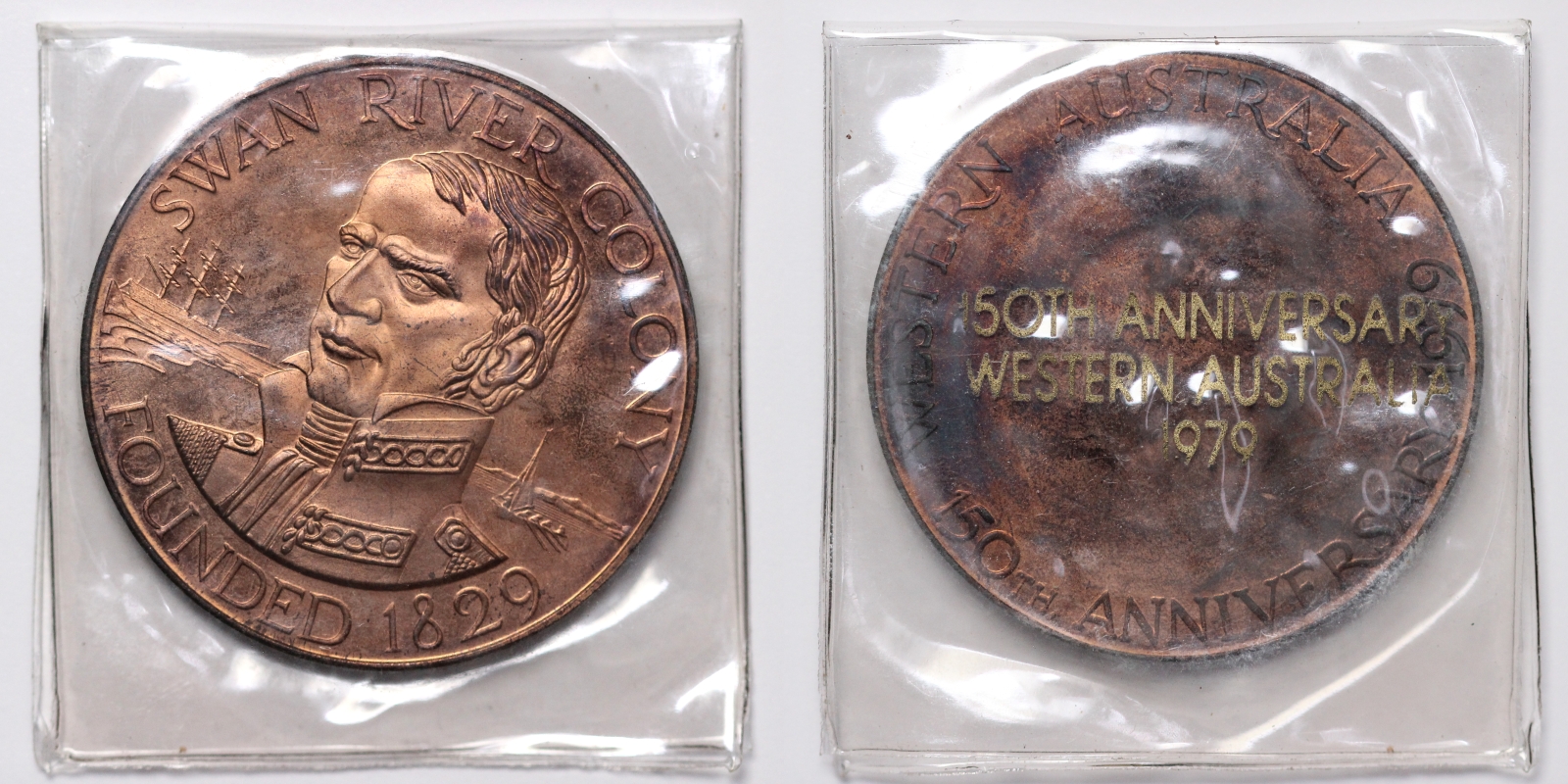 Western Australia 1979 Swan River Colony 150th Anniversary Bronze Medallion with original plastic flip.