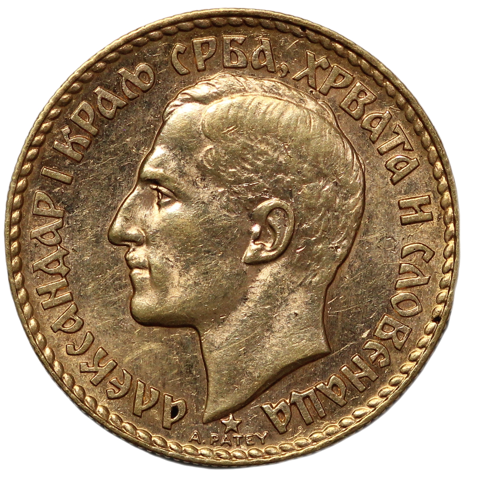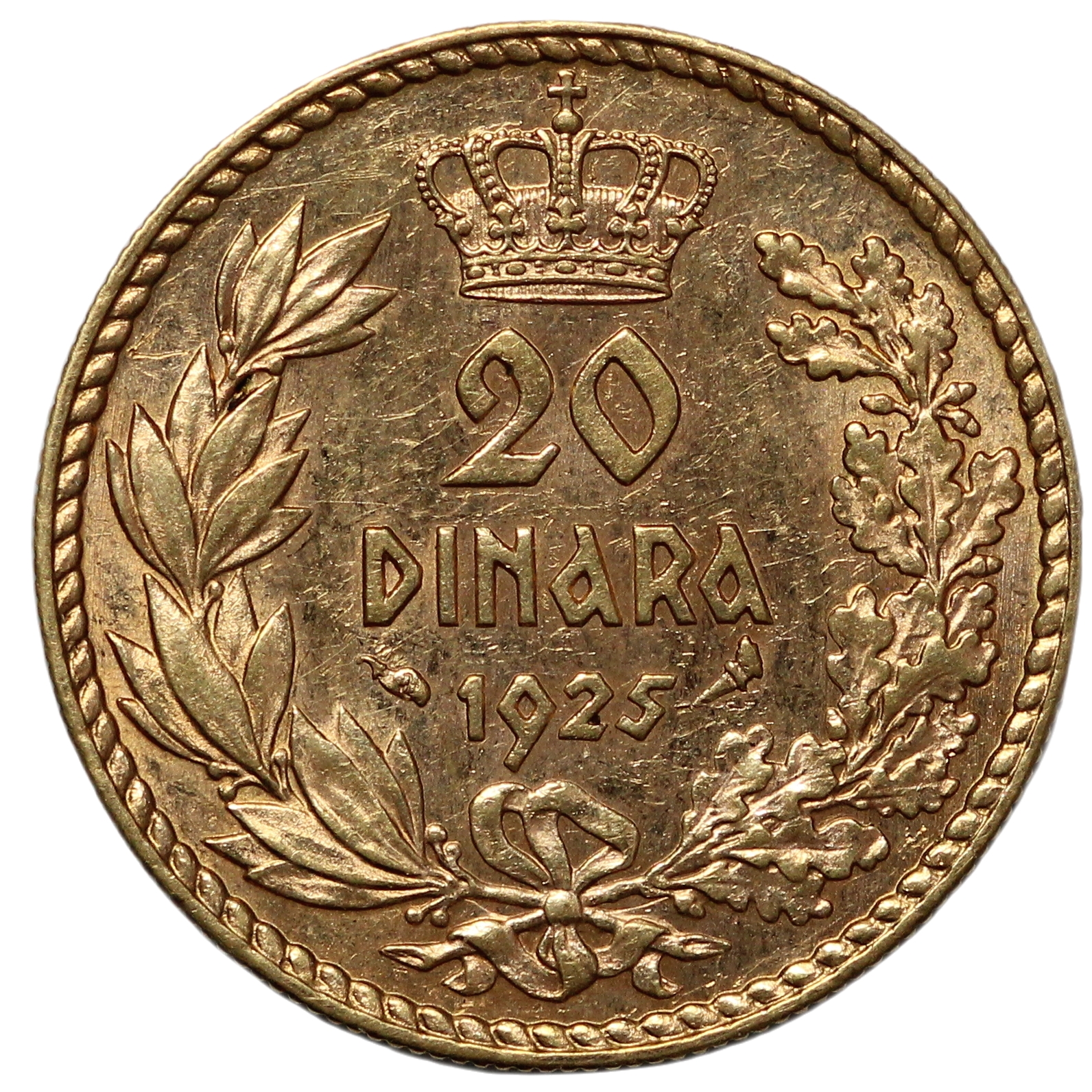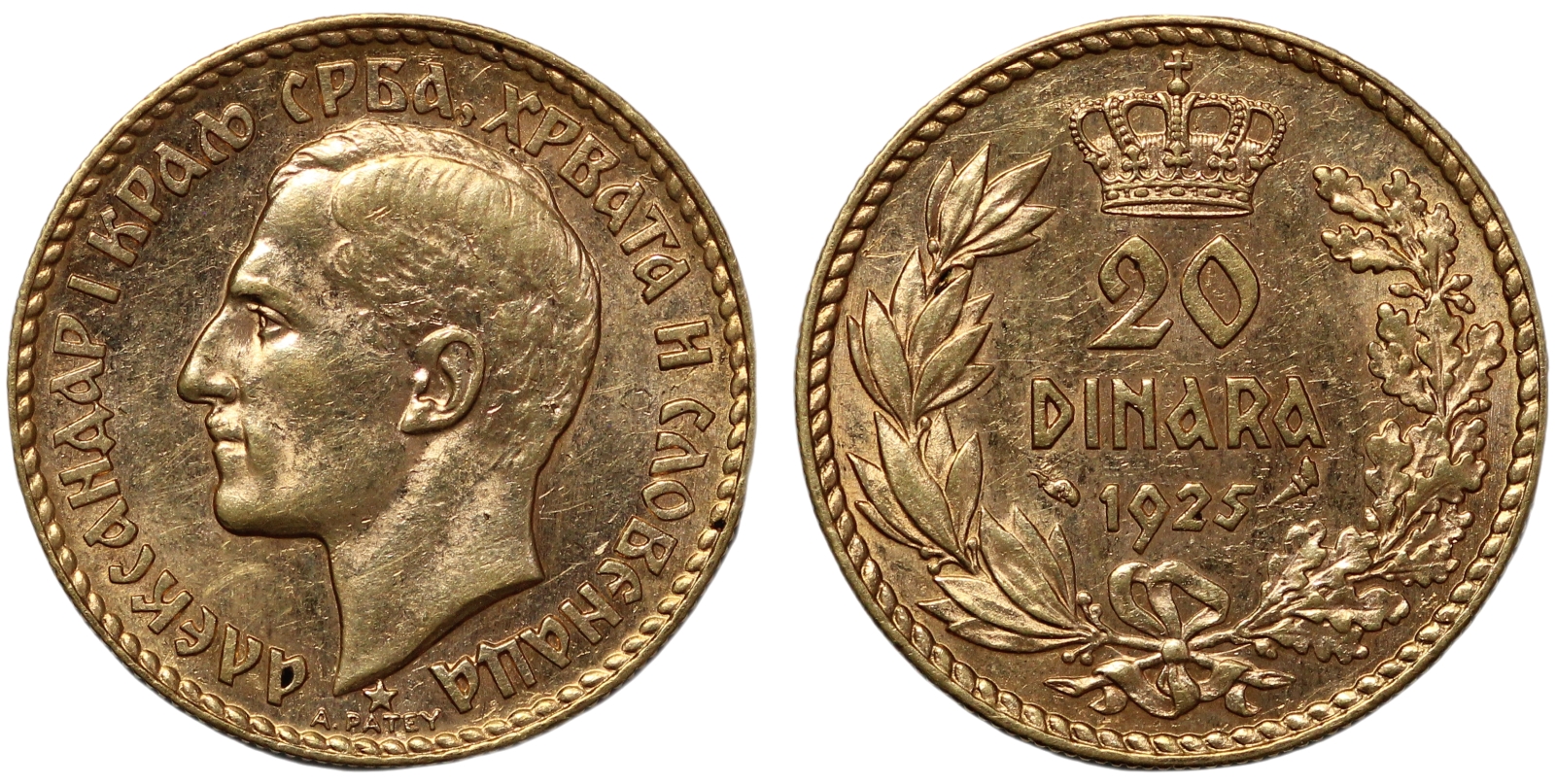 Yugoslavia 1925 20 Dinara, Alexander I, Paris mint, KM# 7. One-year type.