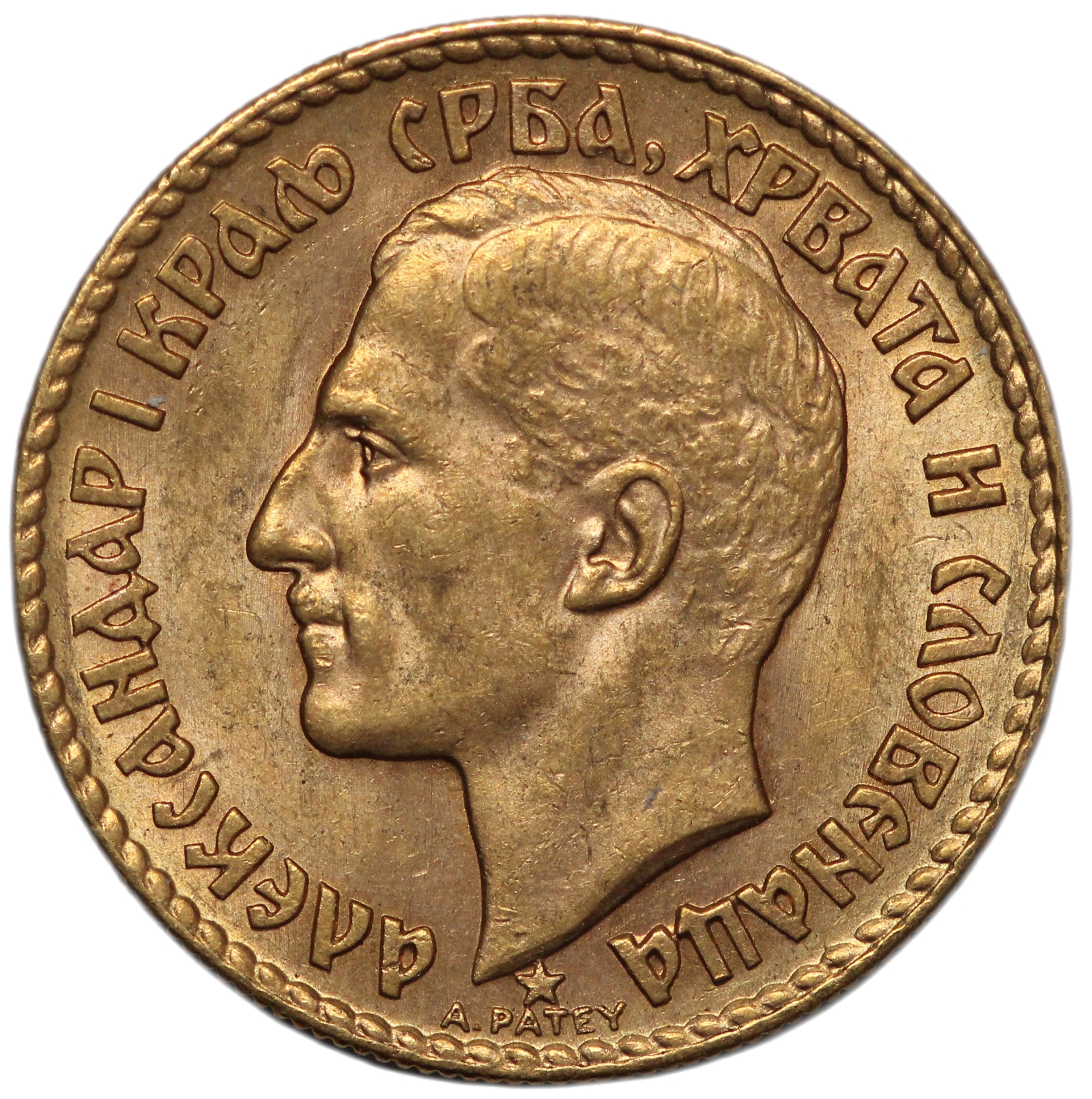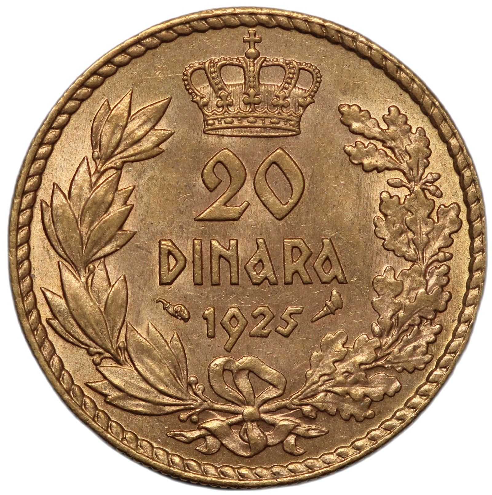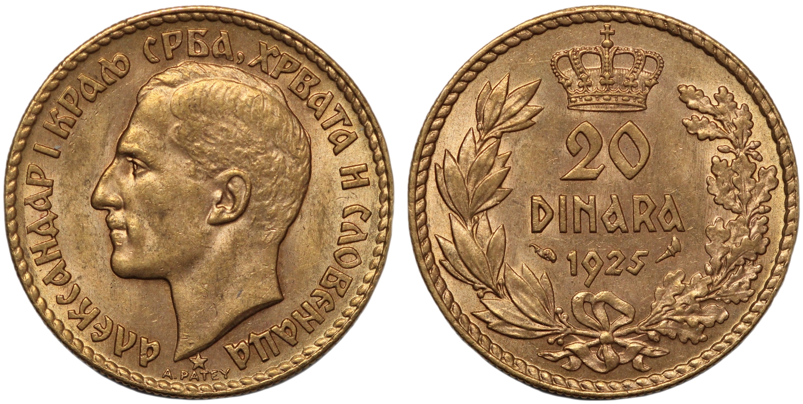 Yugoslavia 1925 20 Dinara, Alexander I, Paris mint, KM# 7. One-year type.